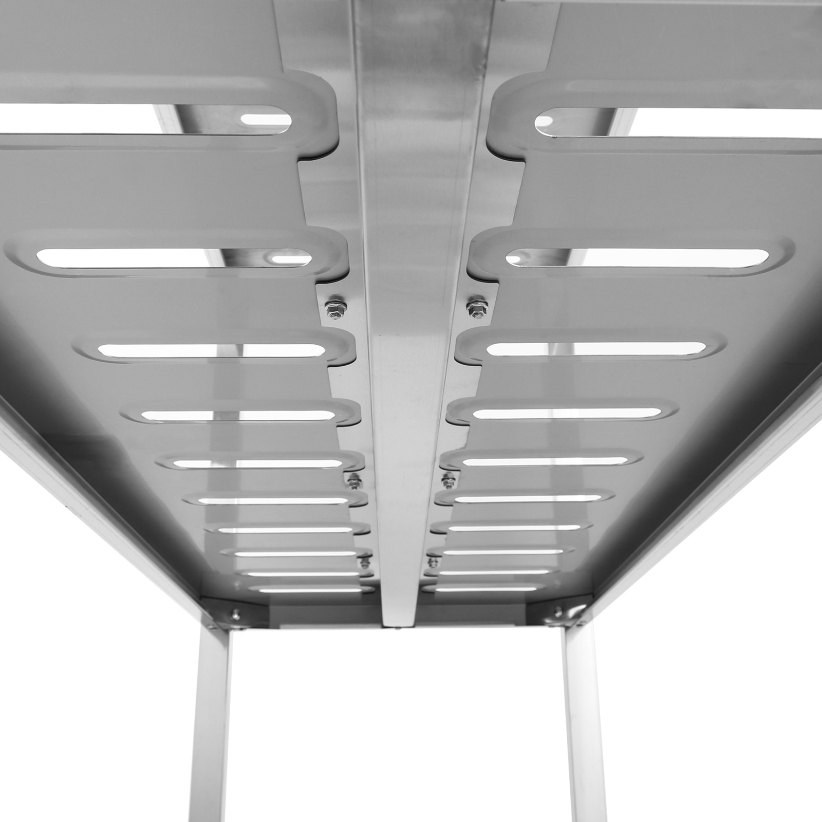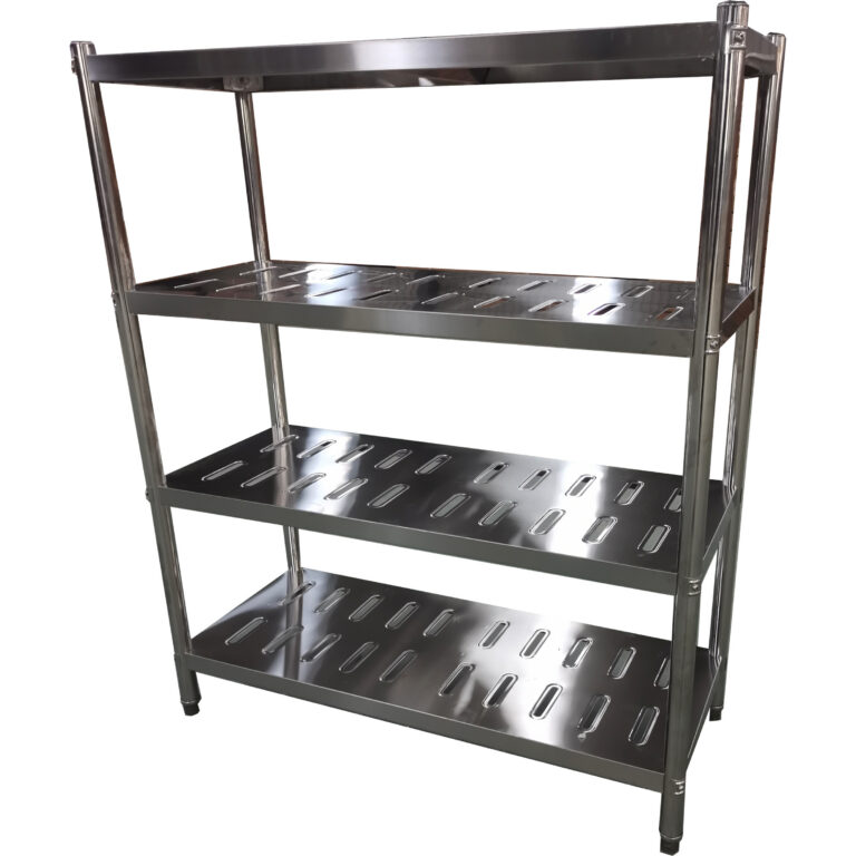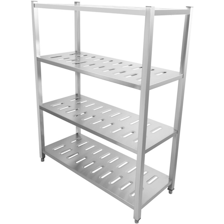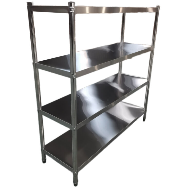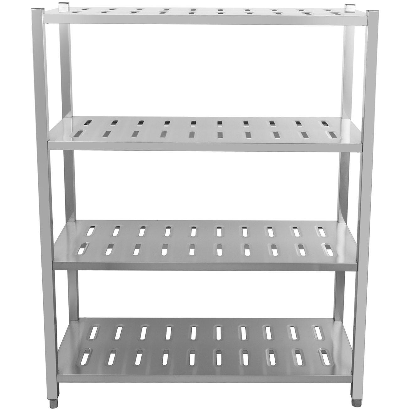 Tämä raskaan sarjan kiinteä ruostumattomasta teräksestä valmistettu kaupallinen hyllystö on täydellinen varastoalueille, ravintolakeittiöihin tai mihin tahansa tyhjälle seinälle, jossa lisäsäilytystila olisi hyödyllistä. Tämä teollisuusluokan hyllystö on valmistettu kestävästä ruostumattomasta teräksestä maksimaalisen pitkäikäisyyden takaamiseksi. Omistatpa ravintolan, varaston, sairaalan tai hotellin, tämä hyllypaketti täyttää varmasti tarpeesi. Jokainen vahvistettu hylly on testattu kestämään jopa 200 kg tasaisesti jaettua painoa. Yksityiskohtaiset tiedot löytyvät kohdasta ’Määrittely’.