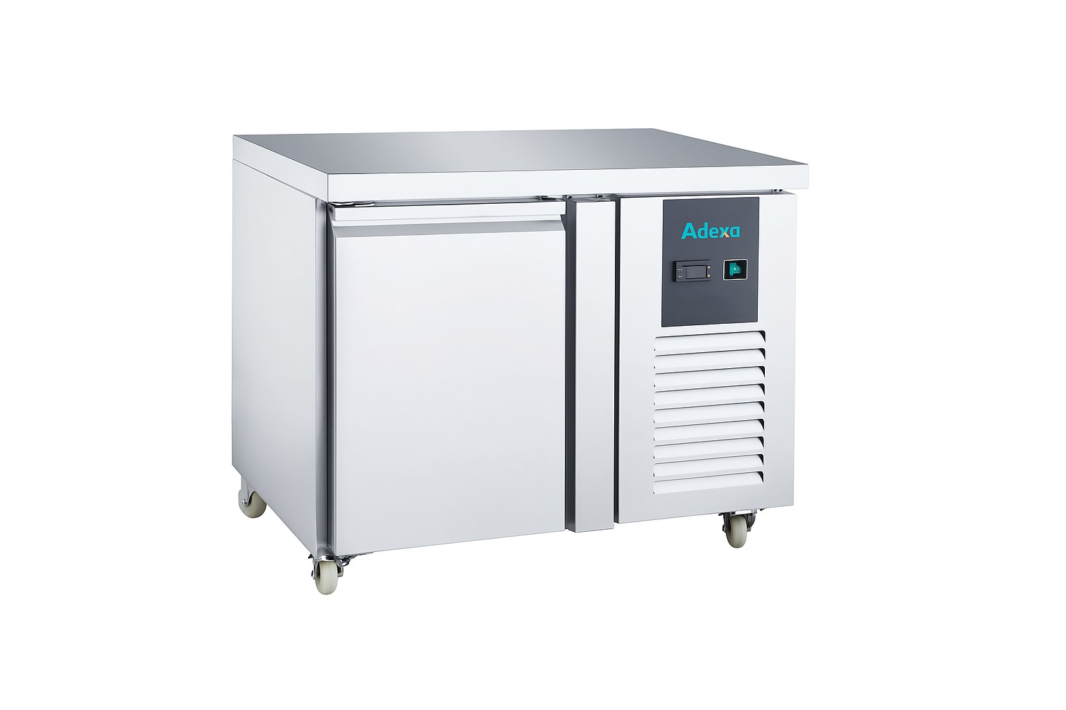 Työtasojääkaappi yhdellä ruostumattomasta teräksestä valmistetulla ovella ja neljällä pyörällä. Tämä ravintolatasoinen jääkaappi sisältää myös joukon hyödyllisiä ominaisuuksia, jotka tekevät työskentelystäsi ravintola- ja ammattikeittiössä huomattavasti helpompaa. Katso tarkemmat tiedot kohdasta ’Tekniset tiedot’.