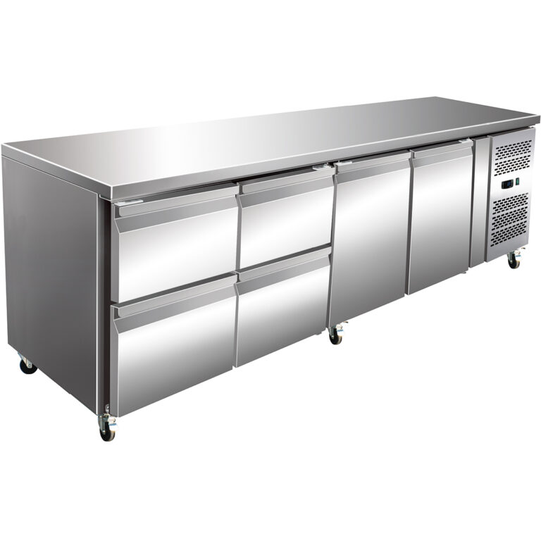 Työtasojäähdytin yhdellä ruostumattomasta teräksestä valmistetulla ovella ja 4 pyörällä mukana. Tämä ravintolapenkki jääkaappi sisältää myös joukon hyödyllisiä ominaisuuksia, jotka tekevät varmasti elämästäsi ravintola- ja ammattikeittiössä huomattavasti helpompaa. Katso tarkemmat tiedot kohdasta ’Tekniset tiedot’.