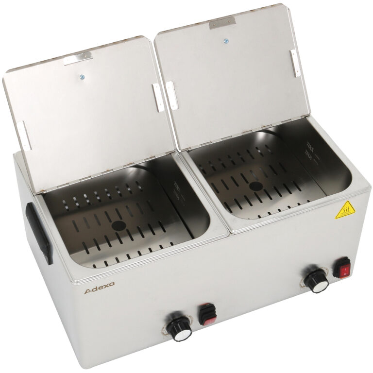 Tämä bain marie -lämmitin pitää ruoan lämpimänä vähäisellä seisonta-ajalla, jotta se voi palvella suuria vierasryhmiä, jotka kiertävät ruokailualueella. Tämä ruokien lämmitin on suunniteltu pöytätasokäyttöön ja se pitää GN1/2-kokoisia astioita. Lämmitin tarjoaa täydellisen aseman kuumien ruokien säilyttämiseen. Laite sisältää jopa lasisen roiskesuojan, joka suojaa ruokaa epäpuhtauksilta ja edistää elintarviketurvallisuutta. Säädettävä lämmönsäätö ja virran merkkivaloKostea lämmitysToimitetaan UK-standardin mukaisella pistokkeellaUpotettu lämmitin veteen lämmitystehokkuuden parantamiseksiRuostumaton teräsrakenneTermostaattiohjaus, kestävä ja vankkaSopii GN-kokoisille ruokapadoille, joiden syvyys on enintään 10 cmKorkean rajan suoja kuivaa lämmitystä vastaanLiukumattomat kumijalatLämmitys- ja virtamerkkivalotKatso tarkat tiedot kohdasta ’Tekniset tiedot’.