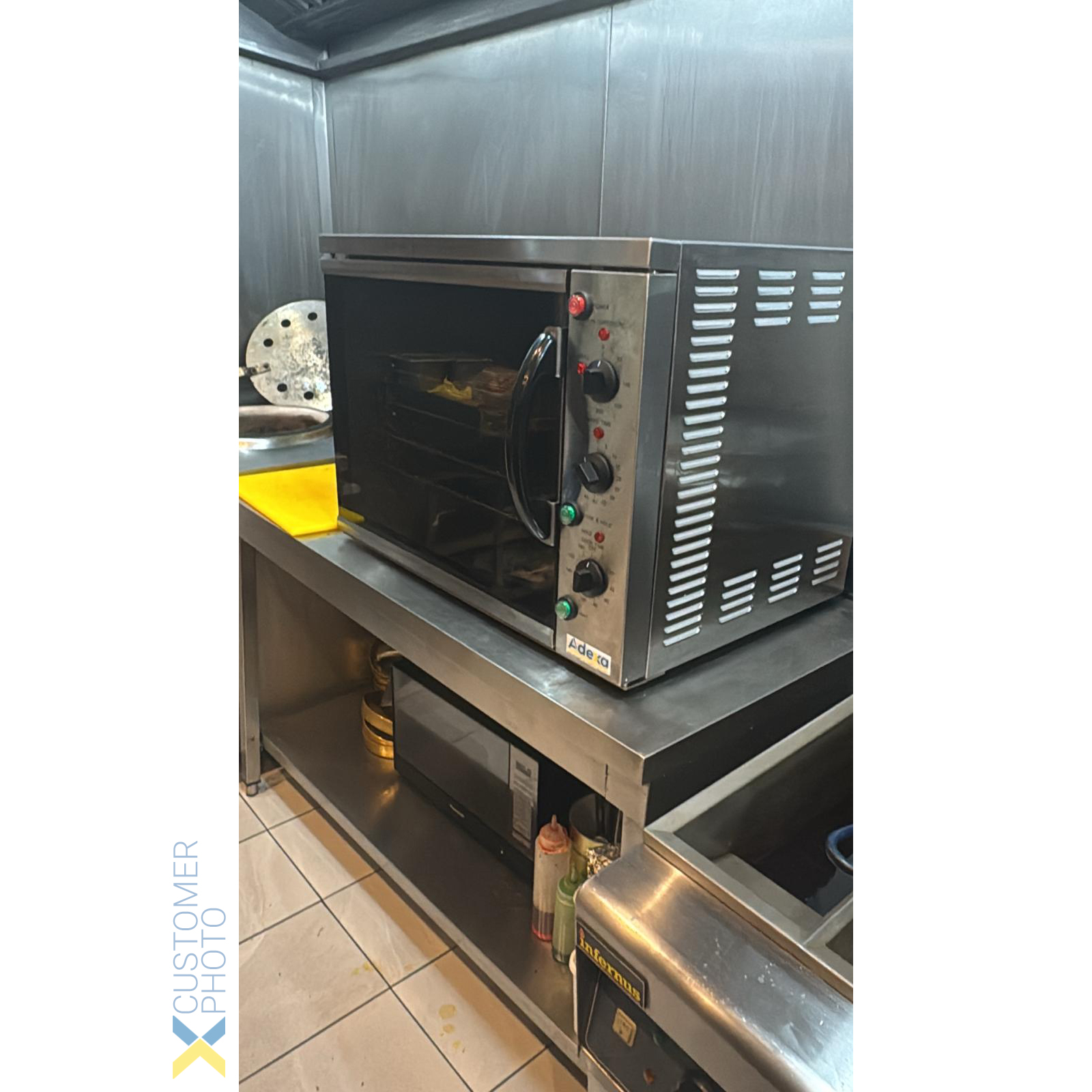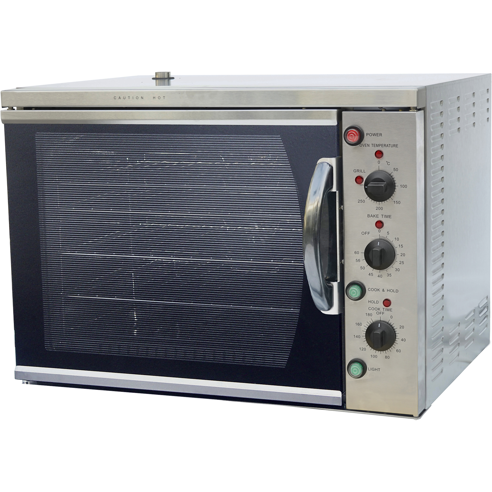 Tämä kaupallinen kiertoilmauuni on varustettu kypsennys- ja säilytystoiminnolla, mikä tekee siitä erittäin hyödyllisen välineen catering-keittiöihin! Kypsennys- ja säilytystoiminto: kun uuni on asetettu kypsennys & säilytys -tilaan, se pitää ruoan lämpimänä vakiona +90 asteen lämpötilassa varsinaisen kypsennyksen jälkeen. Tämä kiertoilmauuni kypsentää ruoan nopeammin alhaisemmassa lämmössä ja tasaisemmin kuin tavalliset uunit. Paistamiseen aseta uuni 160 asteeseen: tämä uuni säilyttää kosteuden ja voi ehkäistä ruoan kutistumista. Paistoaika voi lyhentyä 10 minuuttia per kilo ruokaa. Grillaustoiminto. 4 x lankaritilä kokoa 550x365mm (sopii GN1/1 pannuille). Mitat: 796x670x580mm. Teho: 2,8kW. Paino: 70kg. EGO 250 -termostaatti päälle/pois -toiminnolla. Turvakatkaisija. Kumitiiviste. Bakeliittinen kahva. 60 ja 180 minuutin ajastin. Silikonisuojakytkin. Korkean hyötysuhteen ruostumattomasta teräksestä valmistetut lämmityselementit. Liukumaton jalka. Keraaminen pinnoite kammiossa. Ylä- ja alalämmityselementit.