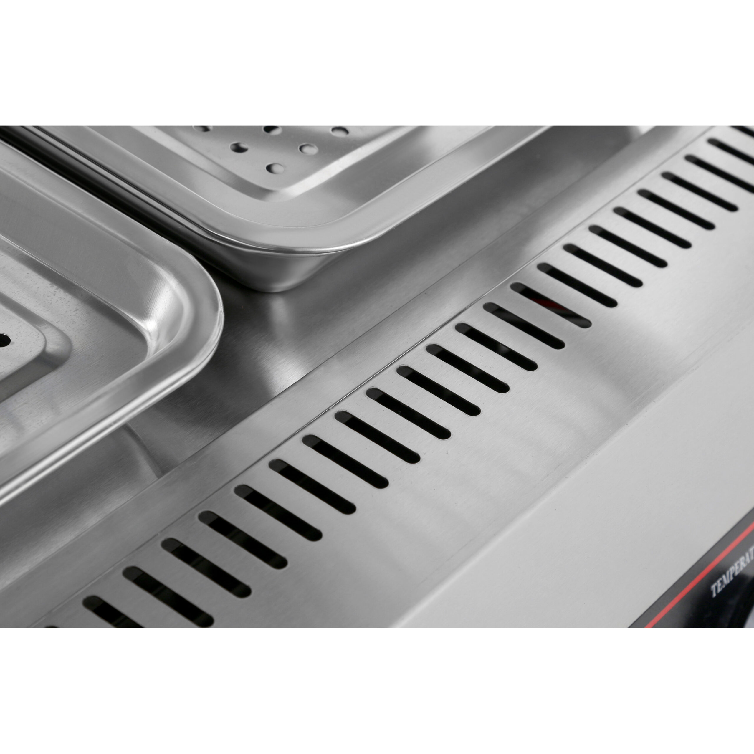 Houkutteleva tapa esitellä lämmitettyjä piirakoita, pasteijoita ja makkararullia tällä lämmitetyllä esittelykaapilla. Ruostumattomasta teräksestä ja lasista valmistettu muotoilu antaa asiakkaillesi 360° näkymän parhaaseen lämmitettyyn ruokavalikoimaasi, mikä on täydellinen kahviloille, catering-palveluille, kioskeille, lähikaupoille, pubeille ja baareille, ravintoloille ja kahviloille, supermarketeille, herkkukaupoille ja muille ammattimaisille catering-yrityksille. Katso tarkemmat tiedot kohdasta ’Tekniset tiedot’.