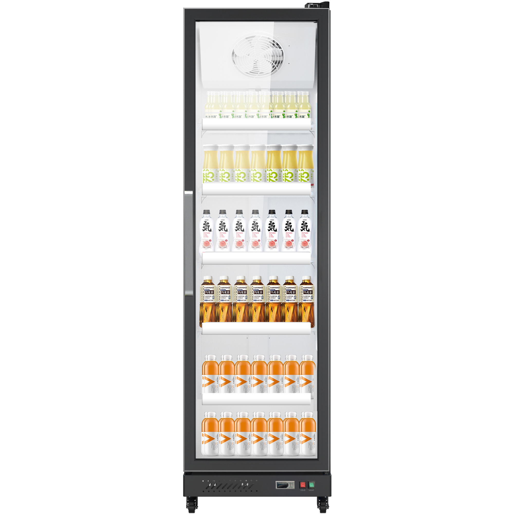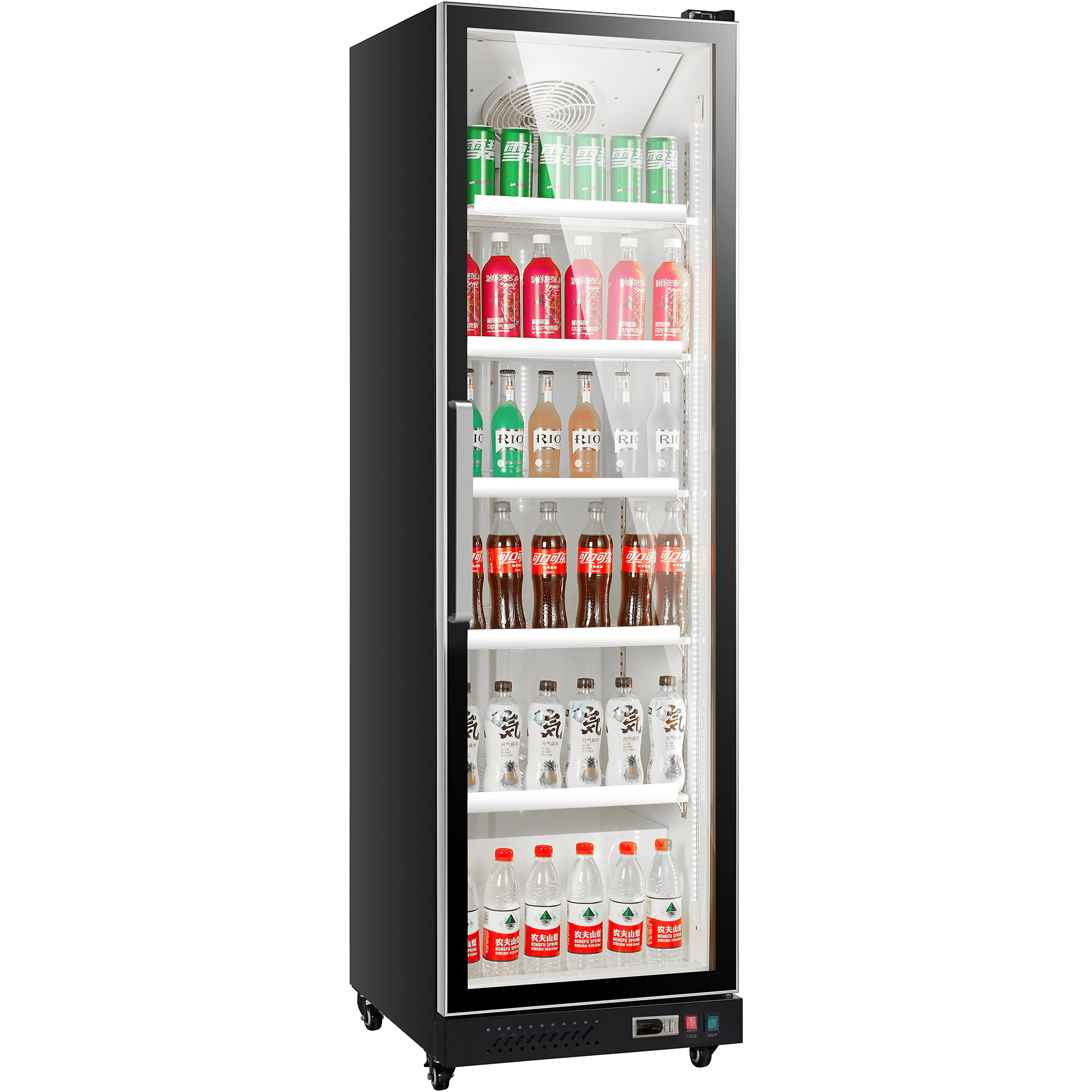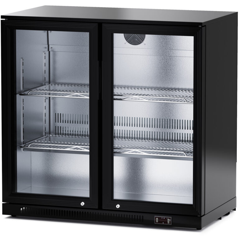 Täysikorkea yksiosainen kaupallinen pullojääkaappi, joka sopii erinomaisesti käytettäväksi missä tahansa kaupassa, baarissa tai supermarketissa. Yksikkö ylpeilee tyylikkäällä mustalla ulkoisella viimeistelyllä, kaksinkertaisilla, itsekseen sulkeutuvilla lasiovilla ja etupaneelin tuuletus mahdollistaa kaapin integroinnin olemassa olevaan kaupalliseen ympäristöön. Sisustaa valaisee energiatehokas LED-valaistus, jota korostaa peilattu sisäinen viimeistely, luoden huomiota herättävän tuotenäytön. 13 ampeerin pistokeliitännällä varustettu yksikkö voidaan yksinkertaisesti kytkeä käyttöön. Huomio: Operatiivisen melutason vuoksi tämä tuote ei välttämättä sovellu kotitalouskäyttöön. Pakkasvapaa jäähdytysjärjestelmä, automaattinen sulatus. Yleismaailmalliset pyörät, etupyörässä jarrutoiminto, helppo kiinnittää. Korkean hyötysuhteen kompressori, joka jäähdyttää nopeasti. Elektroninen lämpötilan hallinta. Automaattinen veden haihdutusjärjestelmä. Automaattinen sulkemisjärjestelmä, lämmöneristys ja energiansäästö. Täysi LED-valaistus, parantaa tuotteiden näyttövaikutusta. Hyllyt voidaan säätää eri kokoisille tuotteille sopivaksi. Karkaistua lasia. Muovilla päällystetyt hyllyt. Elektroninen lämpötilansäädin.