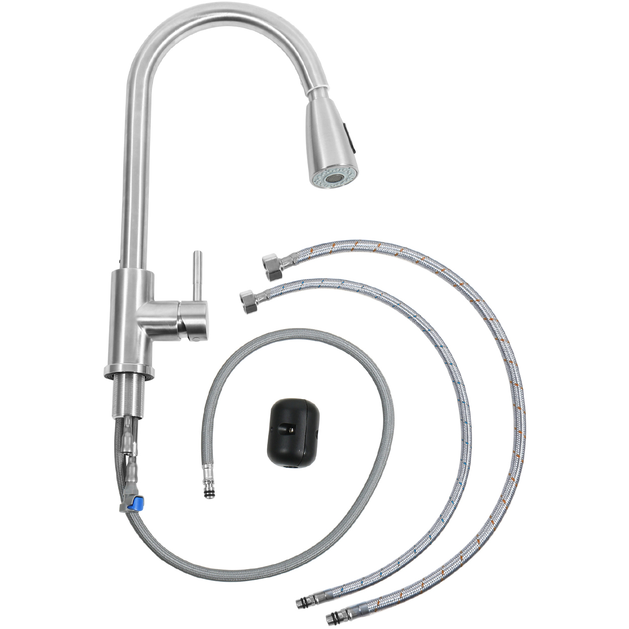 Täydellinen viimeistely mihin tahansa pesuallasasennukseen. Valmistettu kestävästä ruostumattomasta teräksestä, mikä tekee hanasta pitkäikäisen ja kulutusta kestävän. Ruostumaton teräsrunko Ruostumaton teräskahva SS-kiinnitysosilla SS 304 1/2” sisääntuloletku.