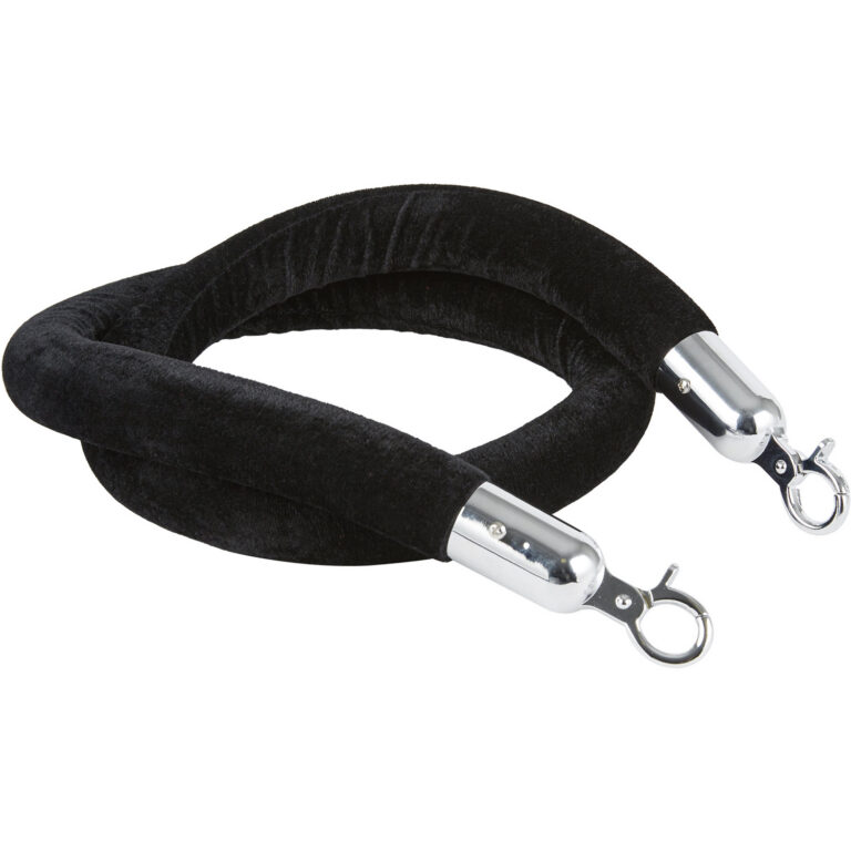 Varustettu ylellisellä veluuriköysimuotoilulla ja hopeisilla päillä, tämä köysi ohjaa kaikki vieraasi oikeaan paikkaan. Sekä klassinen että elegantti, tämä väkijoukonhallintaköysi tarjoaa luotettavaa apua ravintolassasi, yökerhossasi tai kasinollasi. Köyden liikuttelu on myös helppoa koukkupäiden ansiosta, jotka on helppo avata ja sulkea. Pituus: 1500 mm Koukun halkaisija: 28 mm