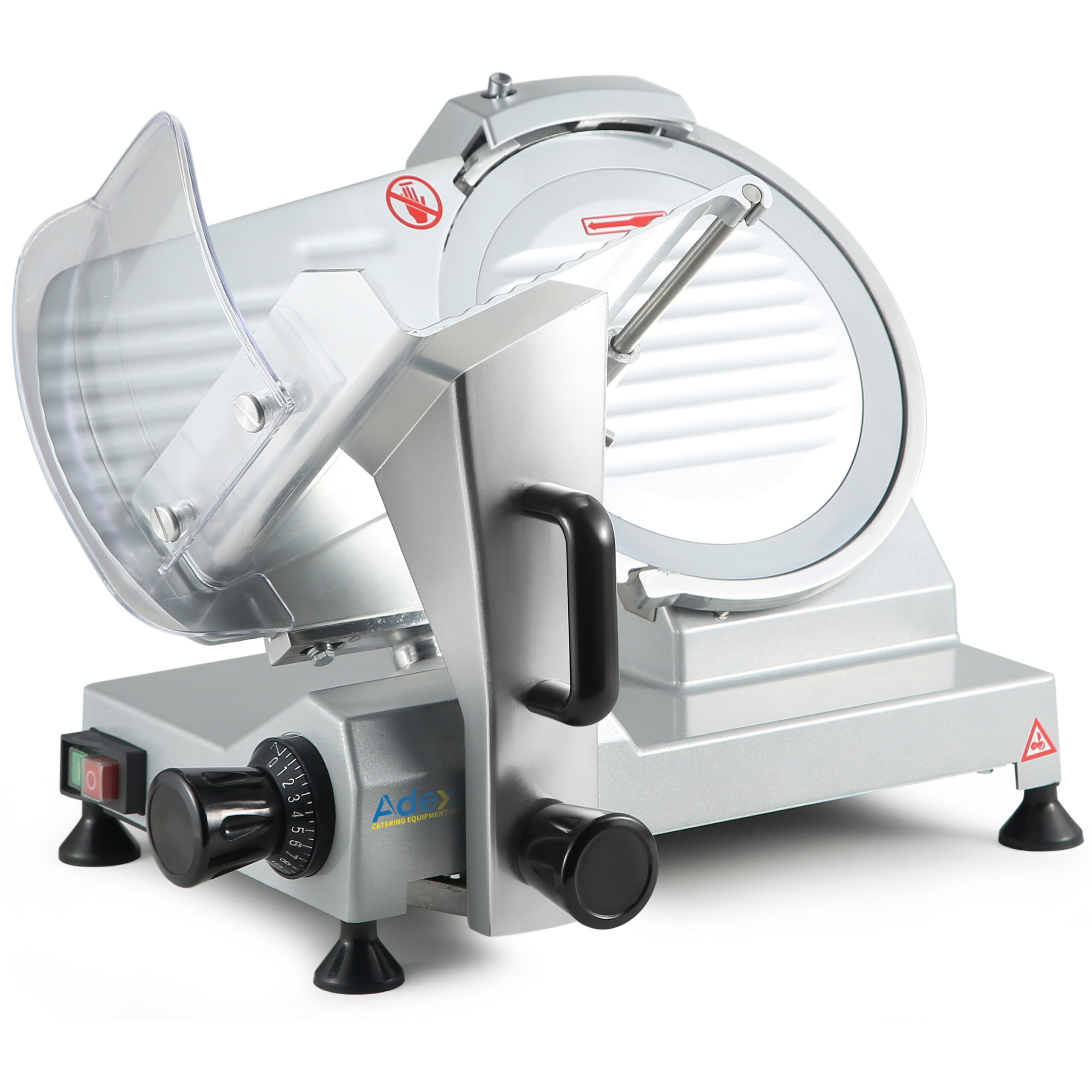 Adexa HBS220A 9″ manuaalinen painovoimasyöttöinen elintarvikeleikkuri on kompakti ja sopii erinomaisesti pieniin tiloihin, joissa tila on rajallista! Se on loistava vihannesten ja prosessoidun lihan viipalointiin, mikä tekee siitä hyvän valinnan pieniin delikatessikauppoihin, kahviloihin, voileipäkauppoihin ja pieniin ravintoloihin. Tämä 9″ leikkuri on valmistettu korkealaatuisesta alumiinista kestävyyden ja helpon puhdistuksen takaamiseksi, ja siinä on sisäänrakennettu teroitusjärjestelmä. Leikkurin terä on valmistettu ruostumattomasta teräksestä ja se on hihnavetoinen tehokkaalla moottorilla. Siinä on kiinteä rengassuoja turvallisuuden takaamiseksi, ja lihavaunu on irrotettava helppoa puhdistusta varten. Leikkuupaksuus on helposti säädettävissä 1/16″ – 1/2″. Tämä 9″ Adexa ammattilaiselintarvikeleikkuri on erinomainen vähäisen volyymin sovelluksiin. Se ei sovellu jatkuvaan, raskaaseen käyttöön tai juuston ja raaka/pakastetun lihan viipalointiin. Sisäänrakennettu teroitin Helppo puhdistus Ruostumaton terästerä 7″ x 8″ tuotealusta Kompakti koko Parhaan tuloksen saavuttamiseksi pese käsin ja kuivaa ruostumisen estämiseksi Kokonaismitat Leveys: 16″ Syvyys: 18″ Korkeus: 15″ Maksimituotekoko: 7 1/2″ x 5″ Asiakirjat Napsauta tästä ladataksesi käyttöohje Napsauta tästä ladataksesi CE-vaatimustenmukaisuusvakuutus Katso tarkat tiedot kohdasta ’Tekniset tiedot’.