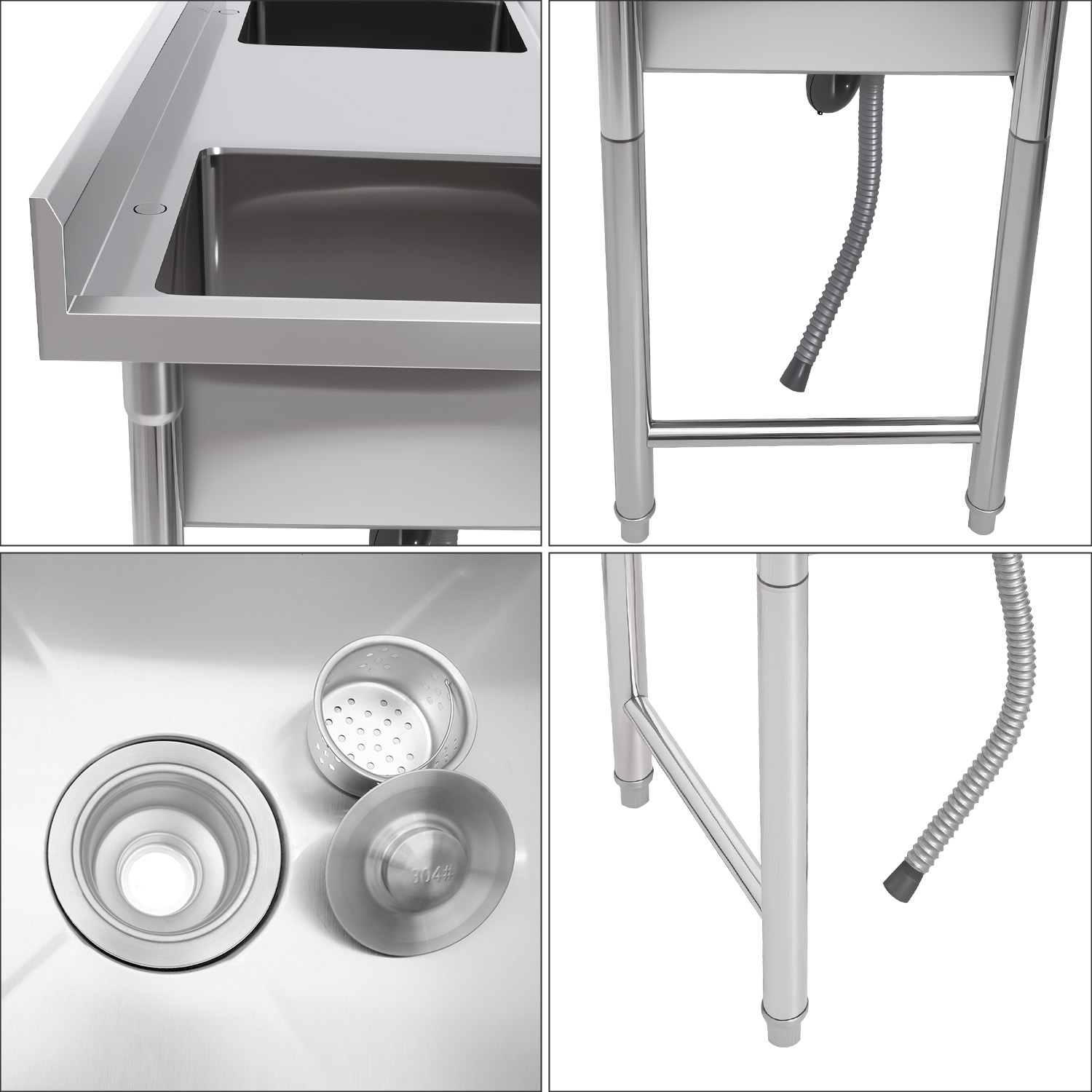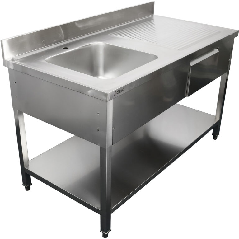 Tämä on erinomainen hinta-laatusuhde ammattikeittiön pesualtaalle. Raskaan käytön, ensiluokkainen, täysin ruostumattomasta teräksestä valmistettu ammattiallas, joka täyttää elintarvike- ja ravintola-alan korkeat laatuvaatimukset. Ei galvanoituja osia, kuten markkinoiden halvoissa vaihtoehdoissa! Ruostumaton teräsrakenne 1 valmiiksi porattu hanan reikä per allas Ei alahyllyä Säädettävät jalat Roiskeita estävä reuna Toimitetaan litteänä Katso tarkemmat tiedot kohdasta ’Tekniset tiedot’.
