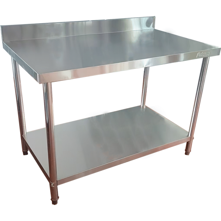 Tämä on erinomainen hintalaatusuhteeltaan liikuteltava kaupallinen työpöytä. Raskaan käytön, korkealaatuinen, 201 AISI ruostumaton teräs pöytä, joka täyttää ravitsemusalan ja catering-teollisuuden korkeat laatuvaatimukset. Alapaneeli ja ylös käännetyt reunat antavat lisäsuojaa. Kansainvälisten hygienia- ja puhdistettavuusstandardien mukainen. Valmistettu ruostumattomasta teräksestä Scotch Brite -viimeistelyllä vastaamaan korkeimpia hygieniastandardeja. Vahvistettu työtaso Työtaso valmistettu kaksiseinäisestä ruostumattomasta teräksestä Kestävyys jopa 500 kg Erittäin korkea kestävyys Katso tarkat tiedot kohdasta ’Specification’.