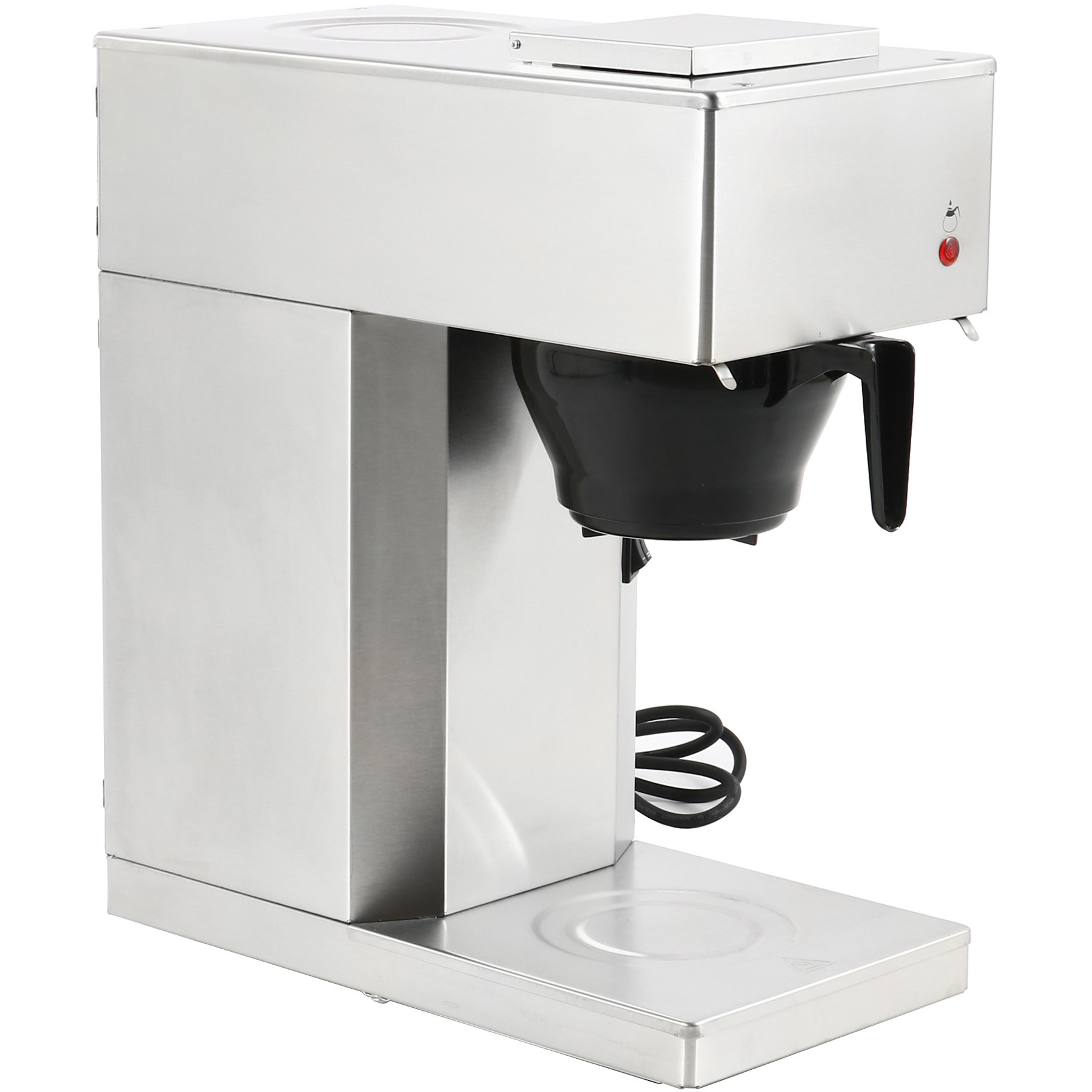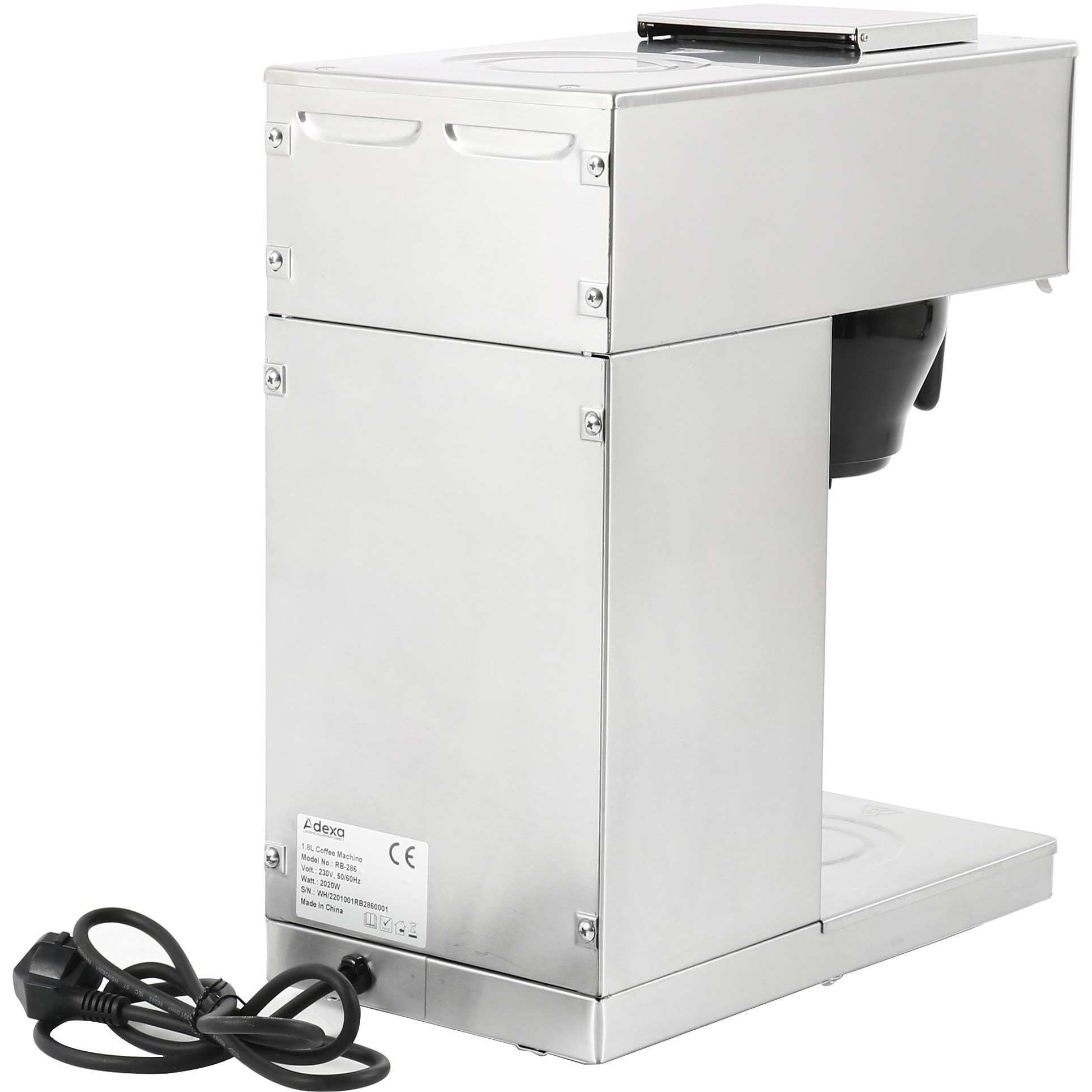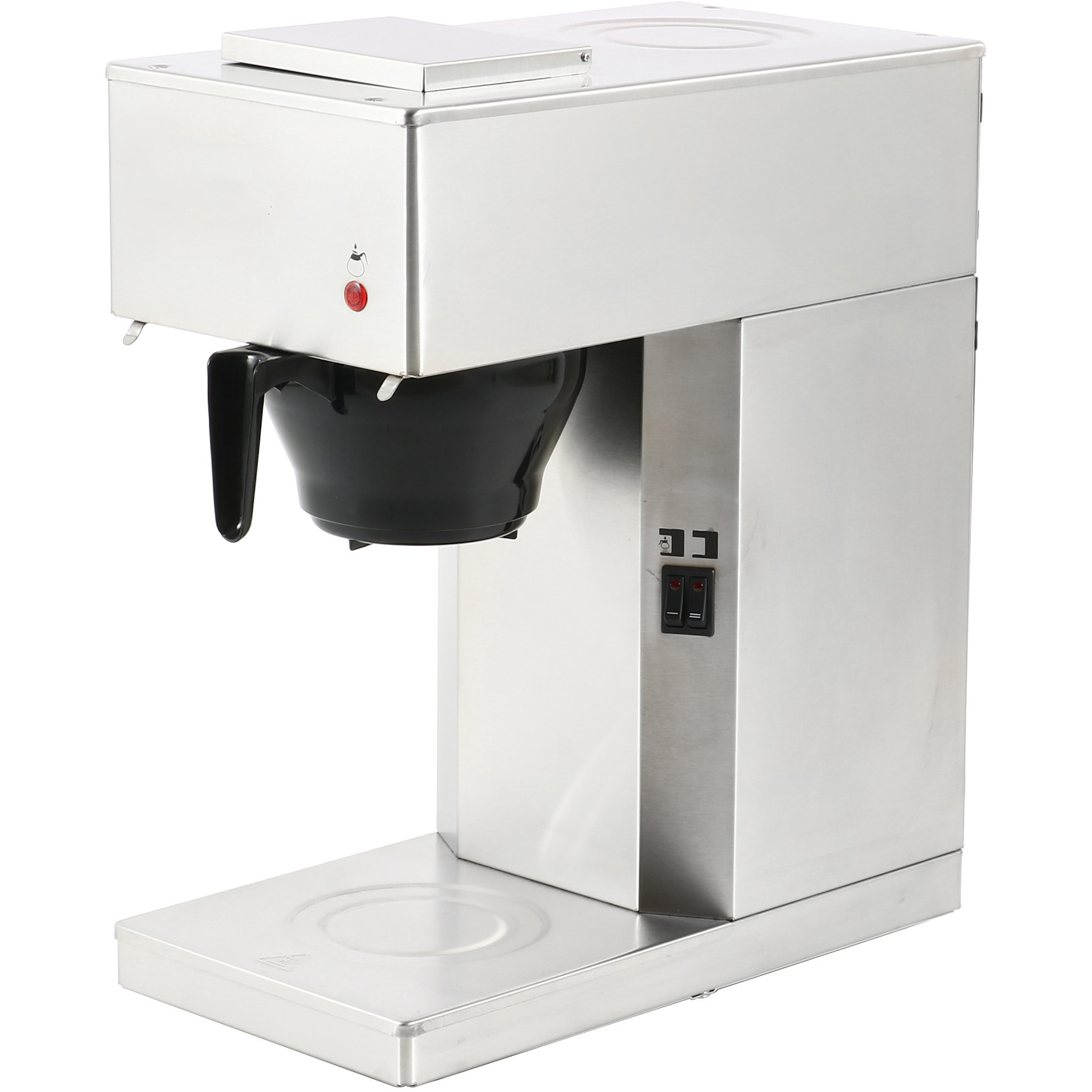 Valmista maukasta kahvia asiakkaillesi tai vieraillesi ammattimaisella suodatinkahvikoneella. Tämä catering-kahvinkeitin on suunniteltu julkisiin tiloihin, joissa ihmiset tarvitsevat loistavaa kahvia helposti, kätevästi ja nopeasti, kuten toimistoihin, kokoushuoneisiin, klubeihin, baareihin ja ravintoloihin. Modernin virtaviivaisen muotoilunsa ansiosta se tuo täysin uuden tunteen mukavuudesta ja ylellisyydestä kaupallisiin kahvinkeittimiin. Sen 2,2 litran sisäinen vesisäiliö ja kaksi itsenäisesti ohjattavaa lämpölevyä mahdollistavat 1,8 litran kannun täydellisen täytön ja sen lämpimänä pitämisen ennen kuin konetta tarvitsee täyttää uudelleen. Jopa 140 kupillista tunnissa (16,7 litraa)Kapasiteetti (kannu): 1,8 litraa Kapasiteetti (säiliö): 2,2 litraaKeittämislämpötila: +92C – +96CKeittoaika: 6 – 7 minTeho: 2.02kW Virransyöttö: 230 / 1 vaiheVakio UK pistoke asennettuKone ja suodattimenpidin valmistettu ruostumattomasta teräksestäSisältää 1 lasikannun”Pump style” keittojärjestelmä, vain tuoretta vettä jokaista kannua kohden. Kuumenna keittovesi vain tarvittaessa, energiatehokkain. Kahvi valmistetaan optimaalisessa lämpötilassa. Kahvi pidetään aina optimaalisessa lämpötilassa. Kolminkertainen turvasuojaus. Katso ’Määrittely’ kohdasta tarkemmat tiedot.