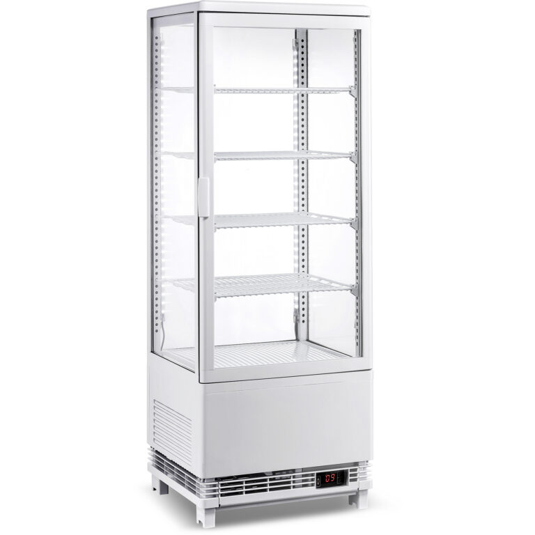 Ammattimainen jäähdytetty myyntilaite, joka on erinomainen kakkujen ja leivonnaisten esittelyyn kahviloissa, ravintoloissa tai kaupoissa. Edullinen vaihtoehto jäähdytettyyn näyttöyksikköön. Täydellinen tiskin päällä oleva näyttöjääkaappi kaupalliseen käyttöön. Katso tarkemmat tiedot ’Tekniset tiedot’ kohdasta.