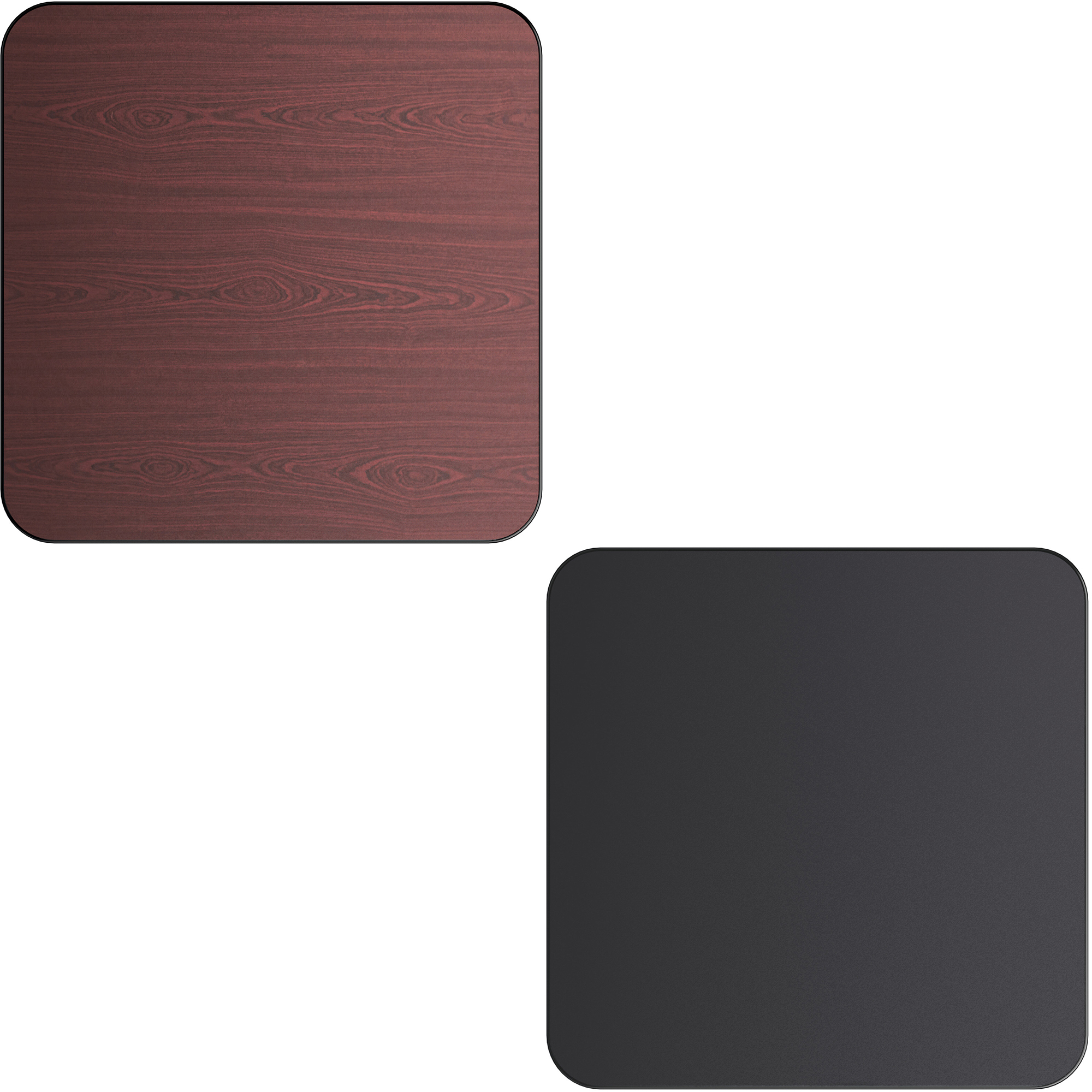 Sopii helposti toimipaikkasi sisustukseen tai värimaailmaan tämän käännettävän pöytälevyn avulla. Tuotteessa on 24 x 24 tuuman koko, joka mahdollistaa kahden asiakkaan mukavan istumisen ilman, että se vie liikaa tilaa asiakastiloissasi. Laminaattimateriaalin ansiosta pöytälevy on myös helppo pyyhkiä puhtaaksi. Tämä pöytälevy on käännettävä, joten voit valita kahden puolen välillä. Lisäksi se on valmistettu kestävistä laminaattimateriaaleista, jotka ovat taatusti pitkäikäisiä ravintola- tai herkkuputiikkikäytössä. Mustat PVC-reunat suojaavat pöytää ei-toivotulta lohkeilulta ja naarmuuntumiselta pitäen sen hyvässä kunnossa yleisestä kulumisesta huolimatta.