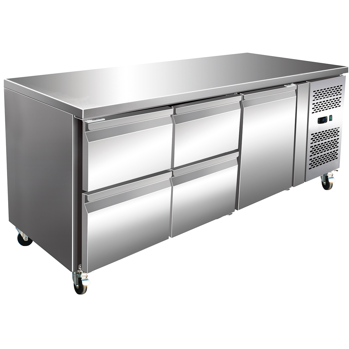 Työtasojäähdytin, jossa on 1 ovi ja 4 GN-laatikkoa, sisältää 4 pyörää. Tämä ravintolan tiskijääkaappi on varustettu myös useilla hyödyllisillä ominaisuuksilla, jotka varmasti helpottavat catering- ja ammattikeittiösi arkea huomattavasti. Lämpötila-alue +2–+8 °C, CFC-vapaa kylmäaine ja vaahto. Täydellinen rakenne sisäpuolelta ja ulkopuolelta ruostumatonta terästä AISI 304, pyöristetyt sisäreunat helpottavat puhdistusta. 60 mm paksu eristys. Ilmastoitu jäähdytyslokero parantaa ilman kiertoa. Automaattinen sulatus ja kondensaatin automaattinen haihdutus. Elektroninen termostaatti ja digitaalinen LED-lämpötilanäyttö mahdollistavat tarkan säädön ja helpon luettavuuden. Itsestään sulkeutuva ovi. Magneettitiiviste voidaan vaihtaa ilman työkaluja. Lämmityselementti piilotettu oven runkoon kondensaatin välttämiseksi. Suunniteltu GN1/1-astian koot huomioon ottaen. HC-kylmäaine. 4 pyörää sisältyy. Virransyöttö: 230V / 1N / 50Hz. Standardi UK pistoke mukana. Dokumentit Klikkaa tästä ladataksesi CE-vaatimustenmukaisuusvakuutuksen Katso tarkat tiedot ’Tekniset tiedot’ -kohdasta.