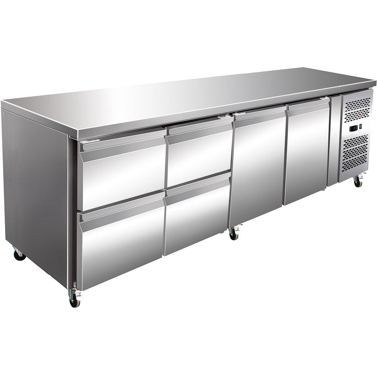 Tiskitason viileäkaappi, jossa on 2 ovea, 4 GN-laatikkoa ja 4 pyörää. Tämä ravintolatason jääkaappi tarjoaa monia hyödyllisiä ominaisuuksia, jotka helpottavat työskentelyä keittiössä ja ateriapalveluympäristössä huomattavasti. Lämpötila-alue +2 – +8CCFC-vapaa kylmäaine ja vaahto Täydellinen rakenne sisä- ja ulkopuolelta ruostumattomasta teräksestä AISI 304 pyöristetyillä sisäreunoilla helppoa puhdistusta varten Eristys 60mm paksuus Tuulettimella varustettu jäähdytyslokero parantaa ilman kiertoa Automaattinen sulatus ja kondenssiveden haihdutus Elektroninen termostaatti ja digitaalinen LED-lämpötilanäyttö tarkkaa hallintaa ja helppoa lukemista varten Itsestään sulkeutuva ovi Magneettinen tiiviste voidaan vaihtaa ilman työkaluja Lämmityselementti oven kehykseen piilotettuna, eliminoi mahdollisen kondensaation Suunniteltu GN1/1-astioiden koon mukaiseksi HC-kylmäaine 4 pyörää mukana Virransyöttö: 230V / 1N / 50Hz Vakiovarustettu UK-pistoke Asiakirjat Napsauta tästä ladataksesi CE-vaatimustenmukaisuuden vaatimuksen Katso kohdasta ’Erityistiedot’ yksityiskohtaisia tietoja varten.