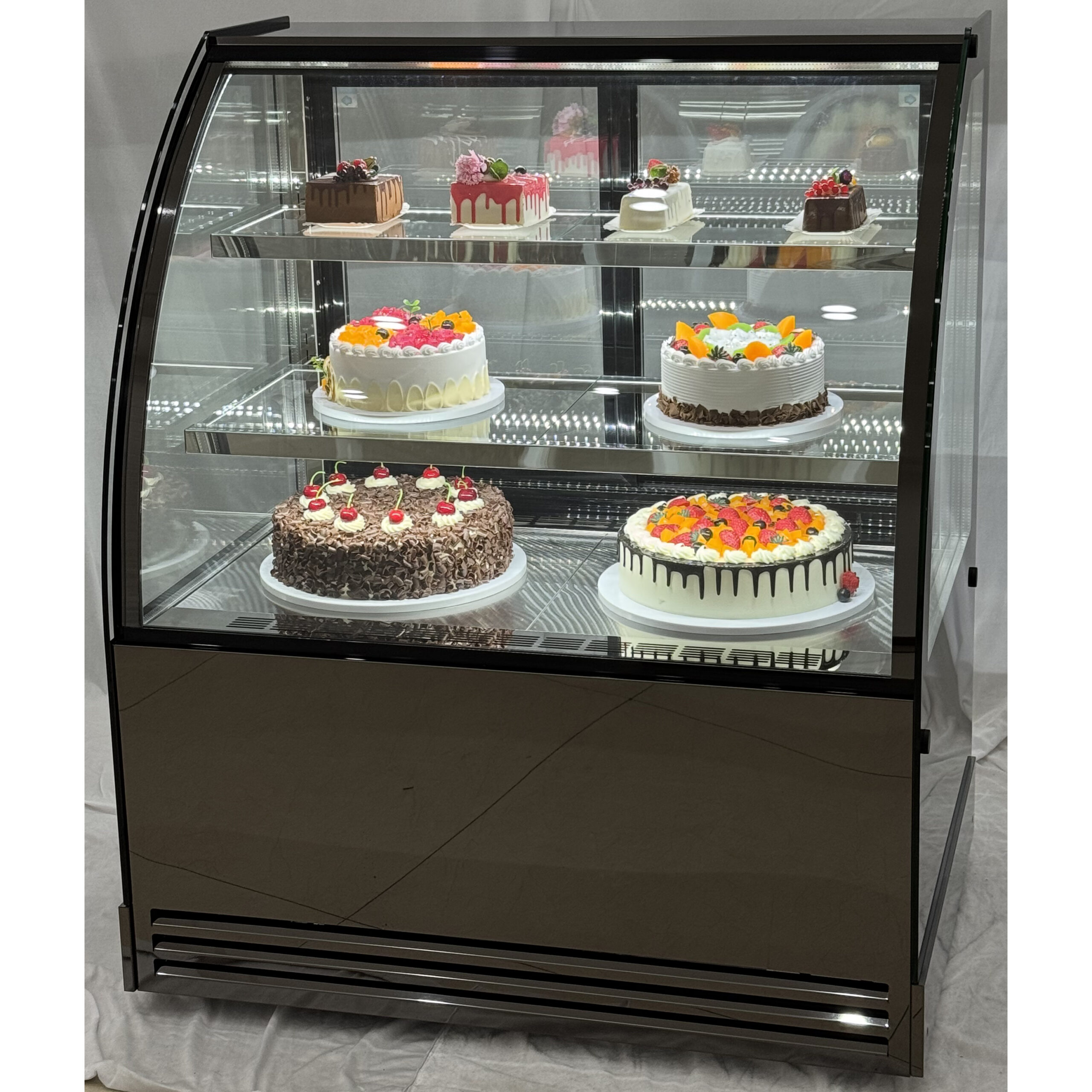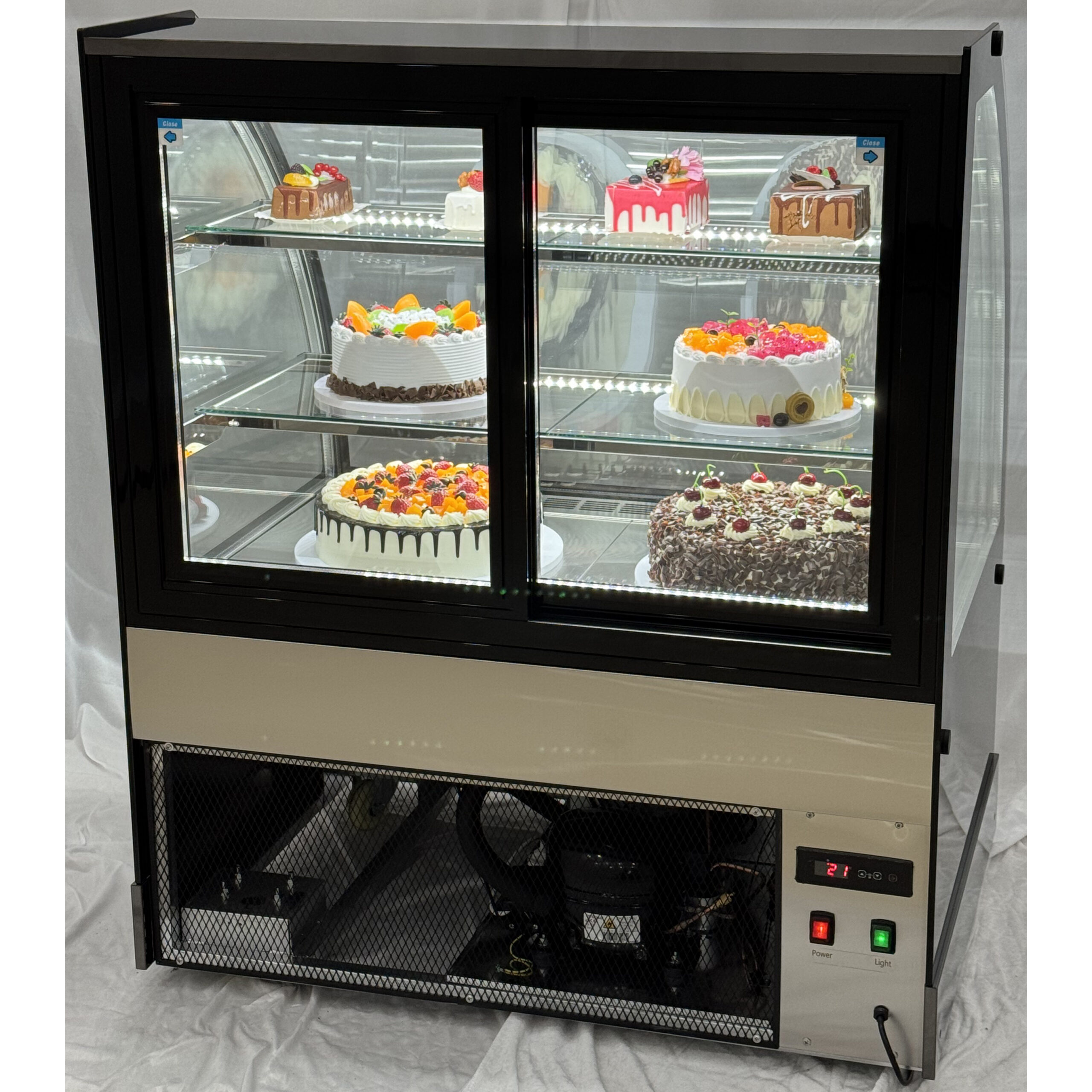Ammattimainen jäähdytetty esillepanokaappi, joka on erinomainen kakkujen ja leivonnaisten esittelyyn kahviloissa, ravintoloissa tai kaupoissa. Hyvä hinta-laatusuhde kylmäesittelykaapille. Täydellinen tiskiin sijoitettava vitriinijääkaappi kaupalliseen käyttöön. Katso tarkemmat tiedot kohdasta ’Tekniset tiedot’.