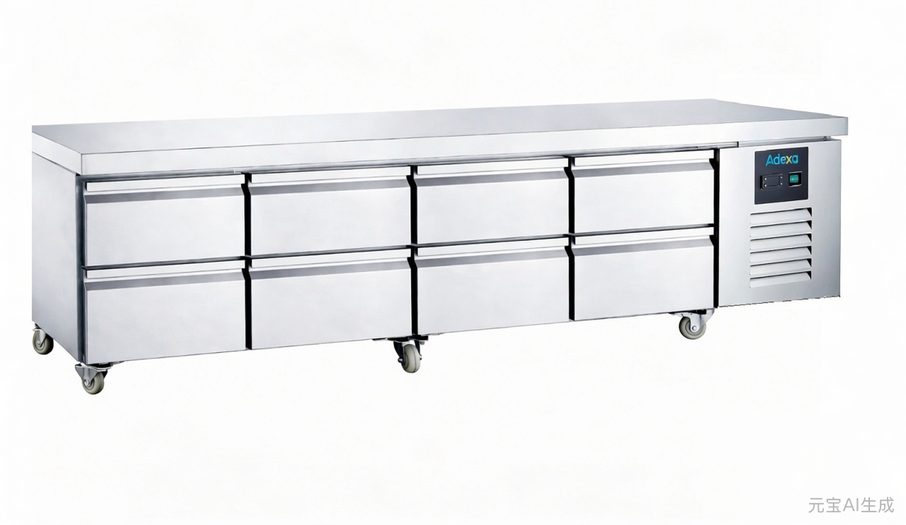 Matala laskurit pakastin yhdellä ruostumattomasta teräksestä valmistetulla ovella ja 4 pyörällä varustettuna. Tämä ravintolapenkki jääkaappi sisältää myös joukon hyödyllisiä ominaisuuksia, jotka tekevät varmasti elämästäsi ravintola- ja ammattikeittiössä huomattavasti yksinkertaisempaa. Katso tarkemmat tiedot kohdasta ’Tekniset tiedot’.