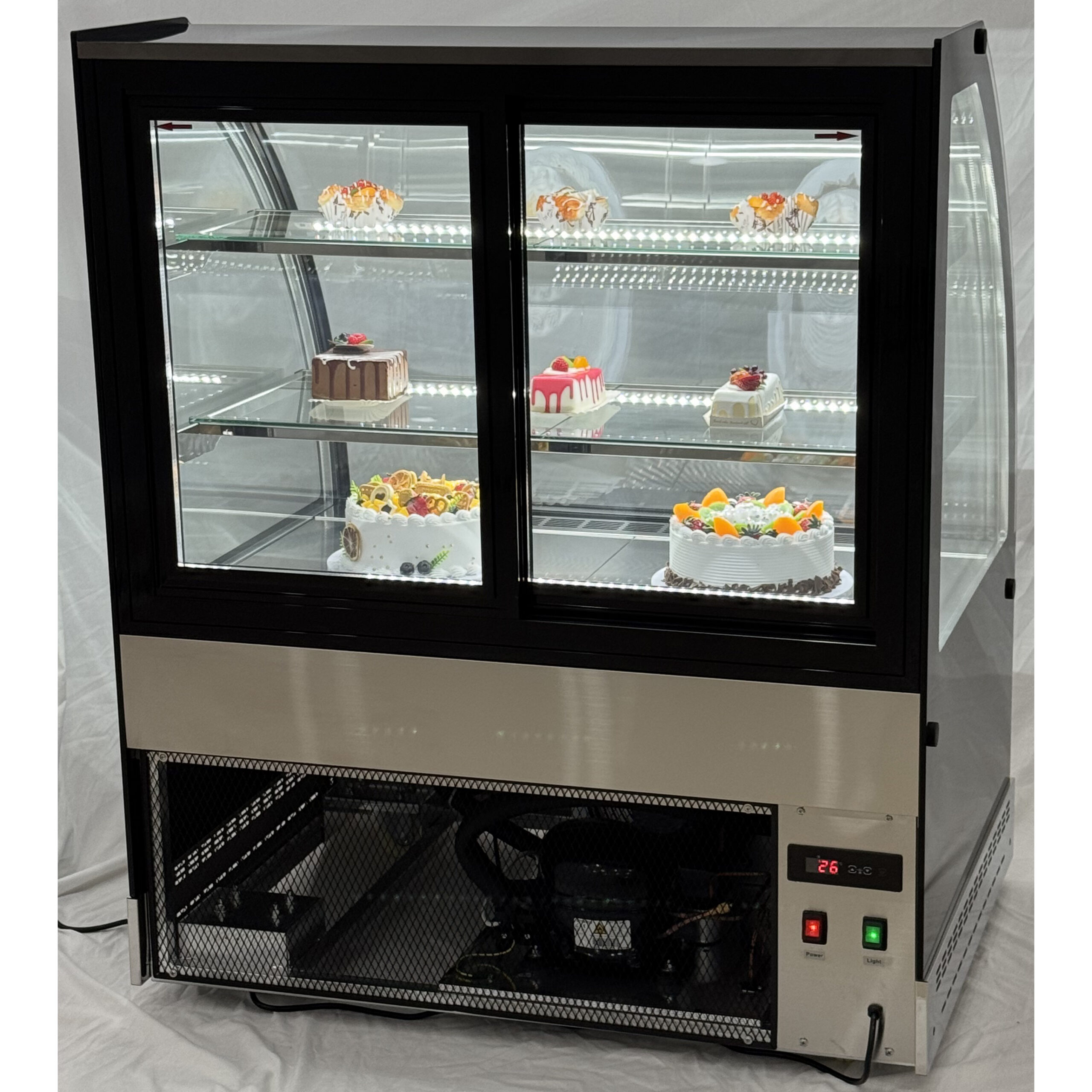 Ammattimainen kylmä vitriini, joka on erinomainen kakkujen ja leivonnaisten esittelyyn kahviloissa, ravintoloissa tai kaupoissa. Erinomainen hinta-laatusuhde, jäähdytetty esittelylaite. Täydellinen pöytätason kylmäkaappi kaupalliseen käyttöön. Katso tarkemmat tiedot kohdasta ’Tekniset tiedot’.