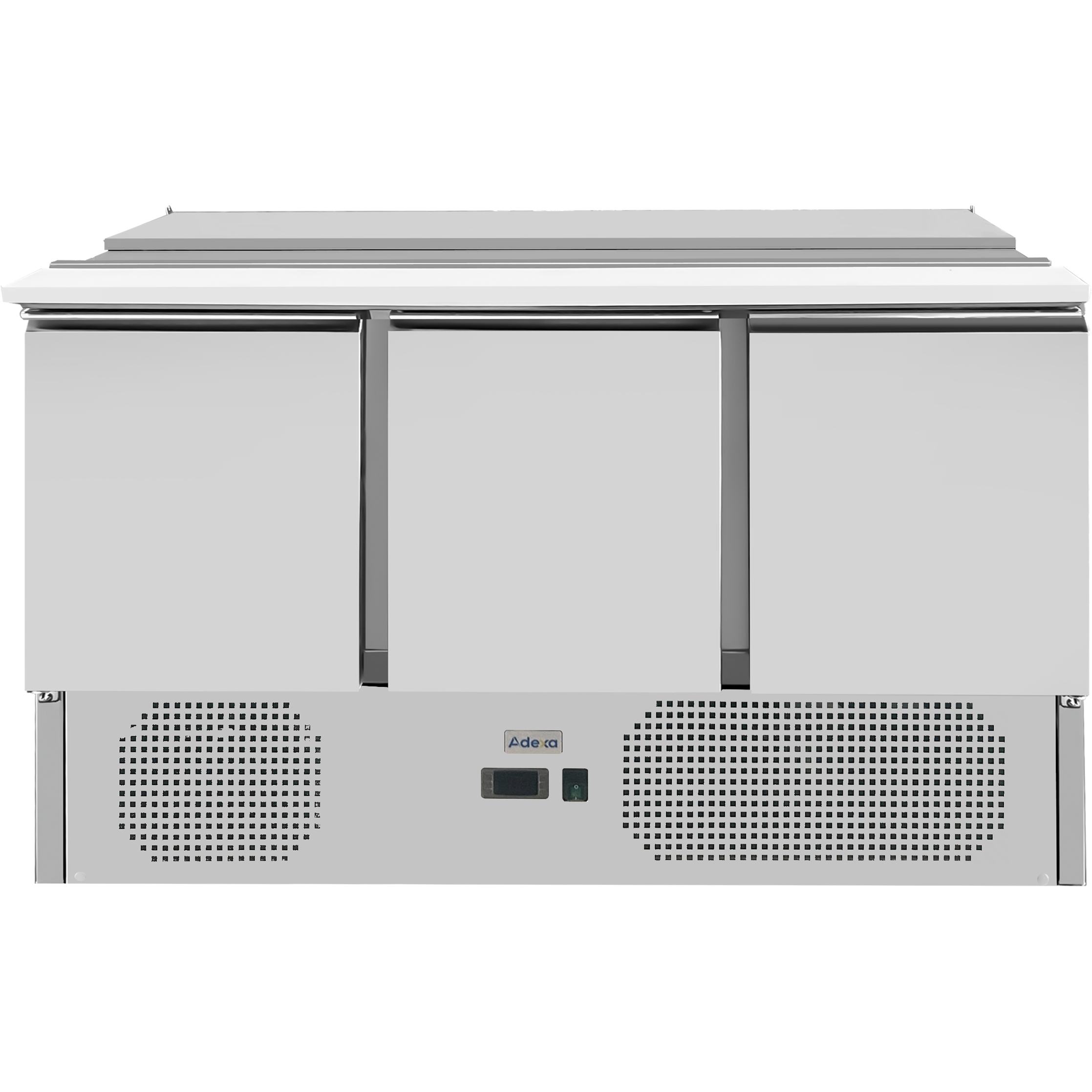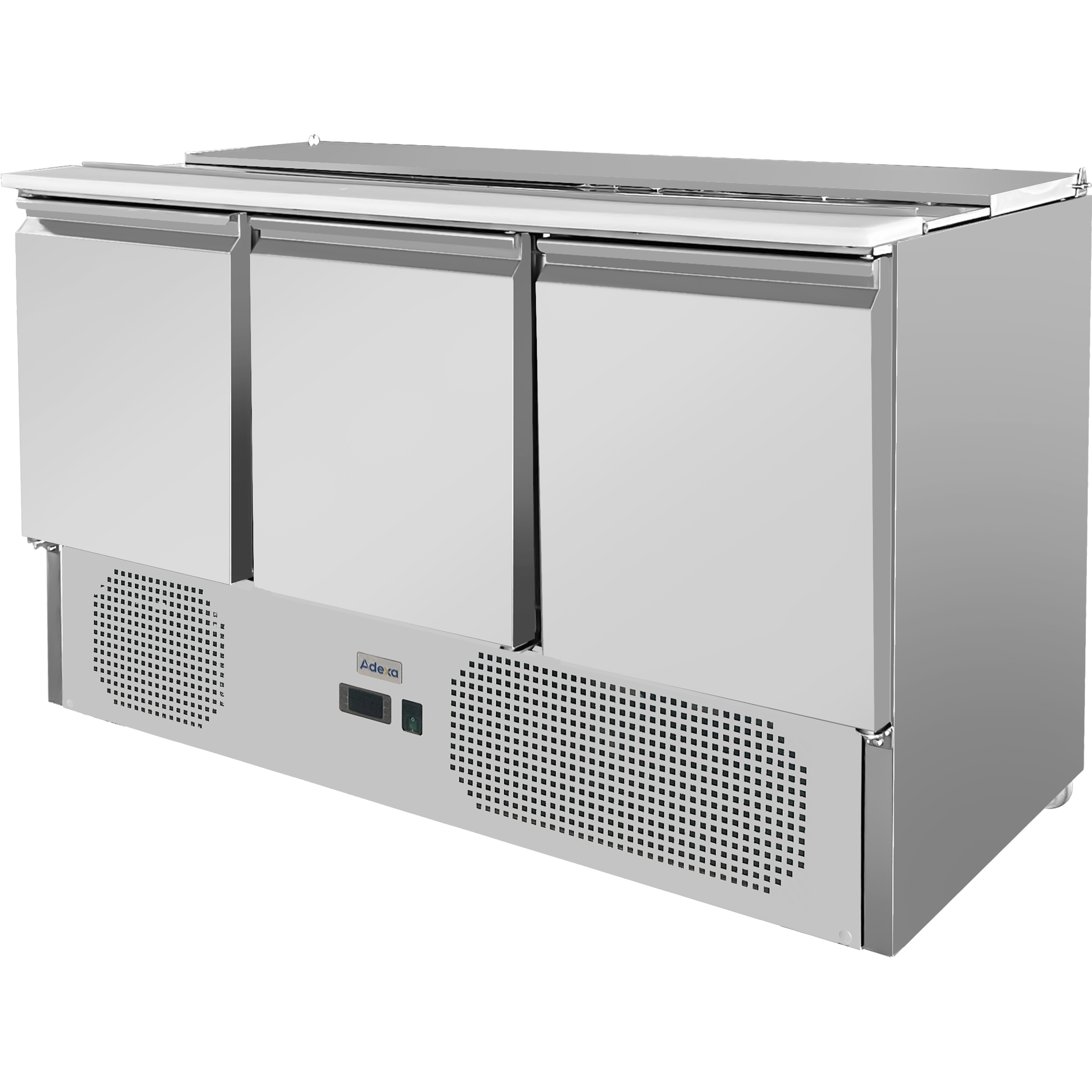 Tämä huippulaatuinen salaattivalmistuspöytä on suunniteltu tarjoamaan erinomaista suorituskykyä kaikissa kiireisissä catering-ympäristöissä. Kolme ovea ja yksi hylly ovea kohden tarjoavat runsaasti säilytystilaa ja ovat ihanteellisia ravintoloille, leipomoille, lihakaupoille, herkkukaupoille, voileipäbaareille ja supermarketeille. Se on valmistettu korkealaatuisesta ruostumattomasta teräksestä ja tarjoaa korkean suorituskyvyn, luotettavuuden, tyylin ja erinomaisen vastineen rahalle. Sen sileä ruostumattomasta teräksestä valmistettu työpinta tarjoaa riittävästi tilaa pizzojen, voileipien ja salaattien valmistamiseen. Helposti puhdistettava ruostumattomasta teräksestä valmistettu sisätila tarjoaa ihanteellisen ympäristön kaikkien valmistettavien ruokien säilyttämiseen. Pistokemalli Pyörät sisältyvät Katso lisätietoja kohdasta ’Määrittely’.