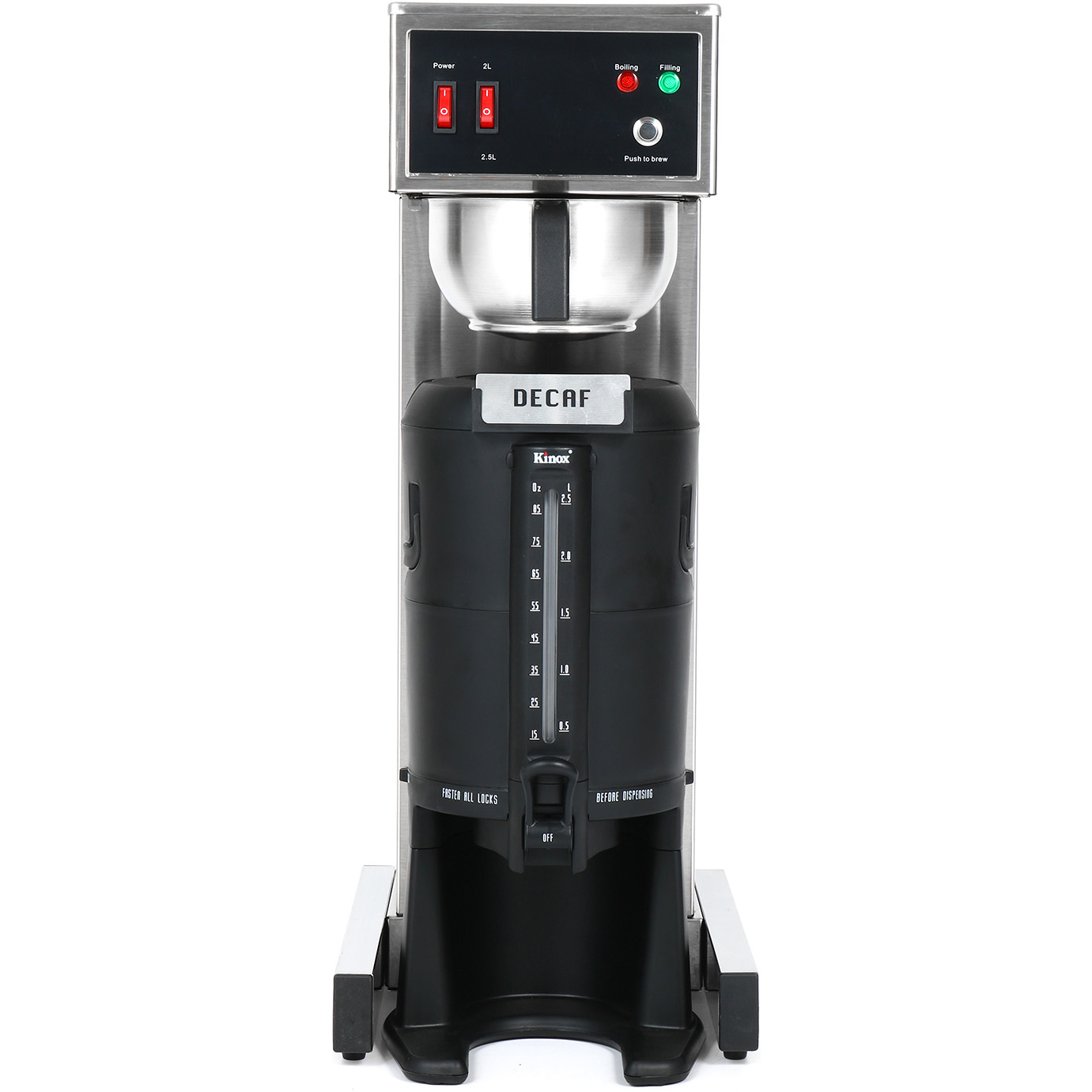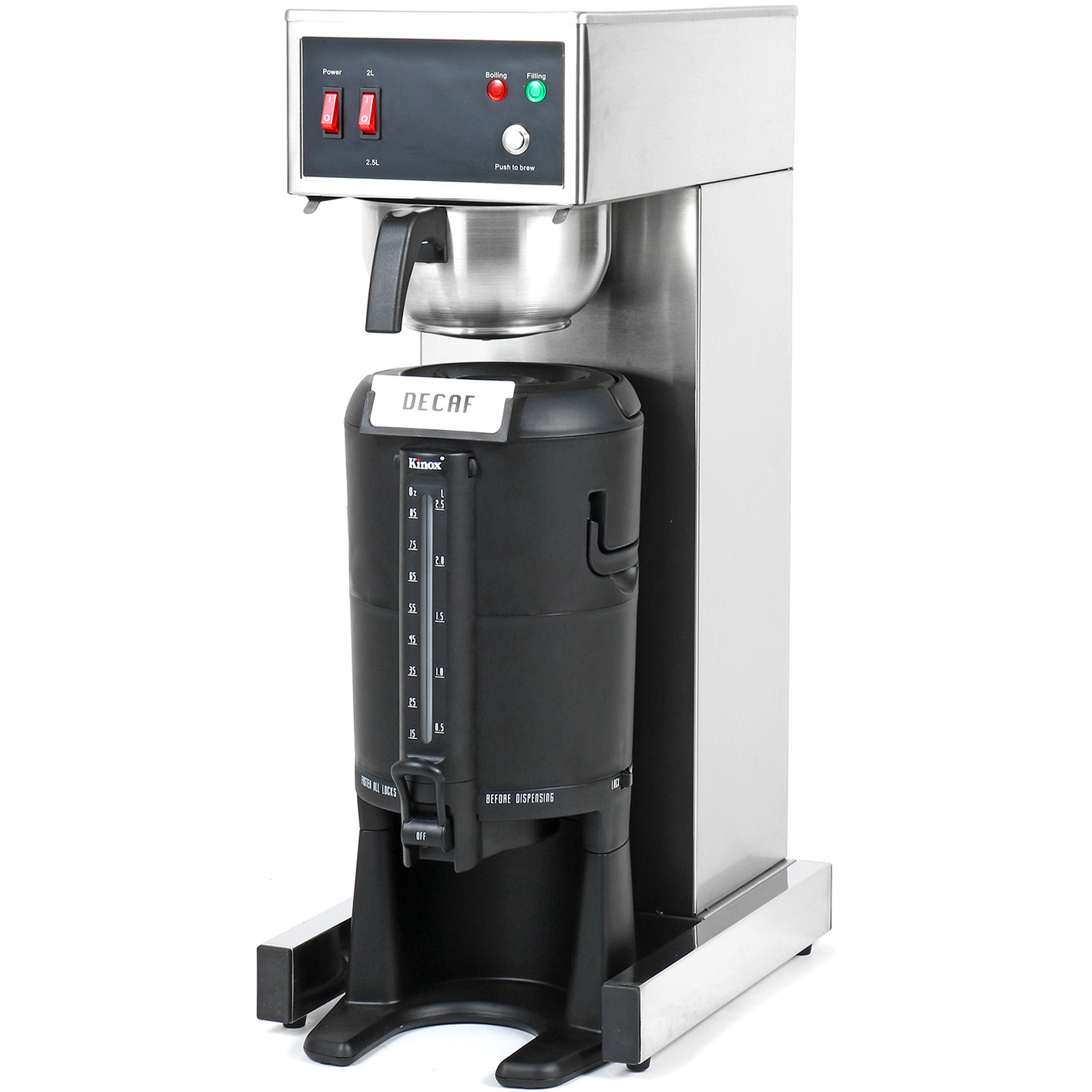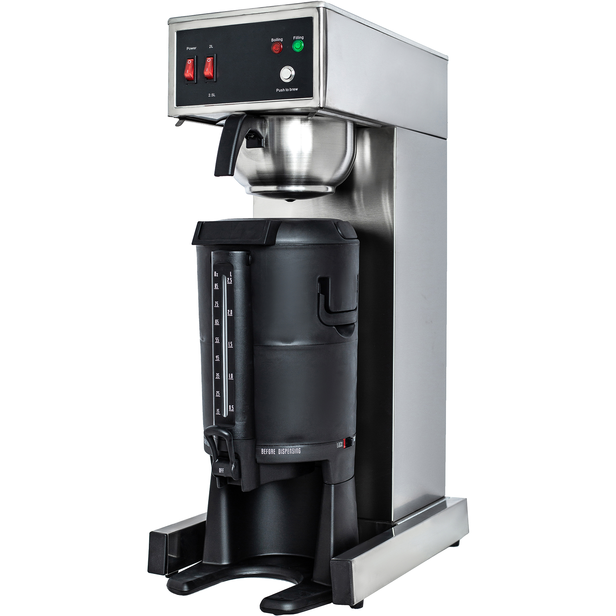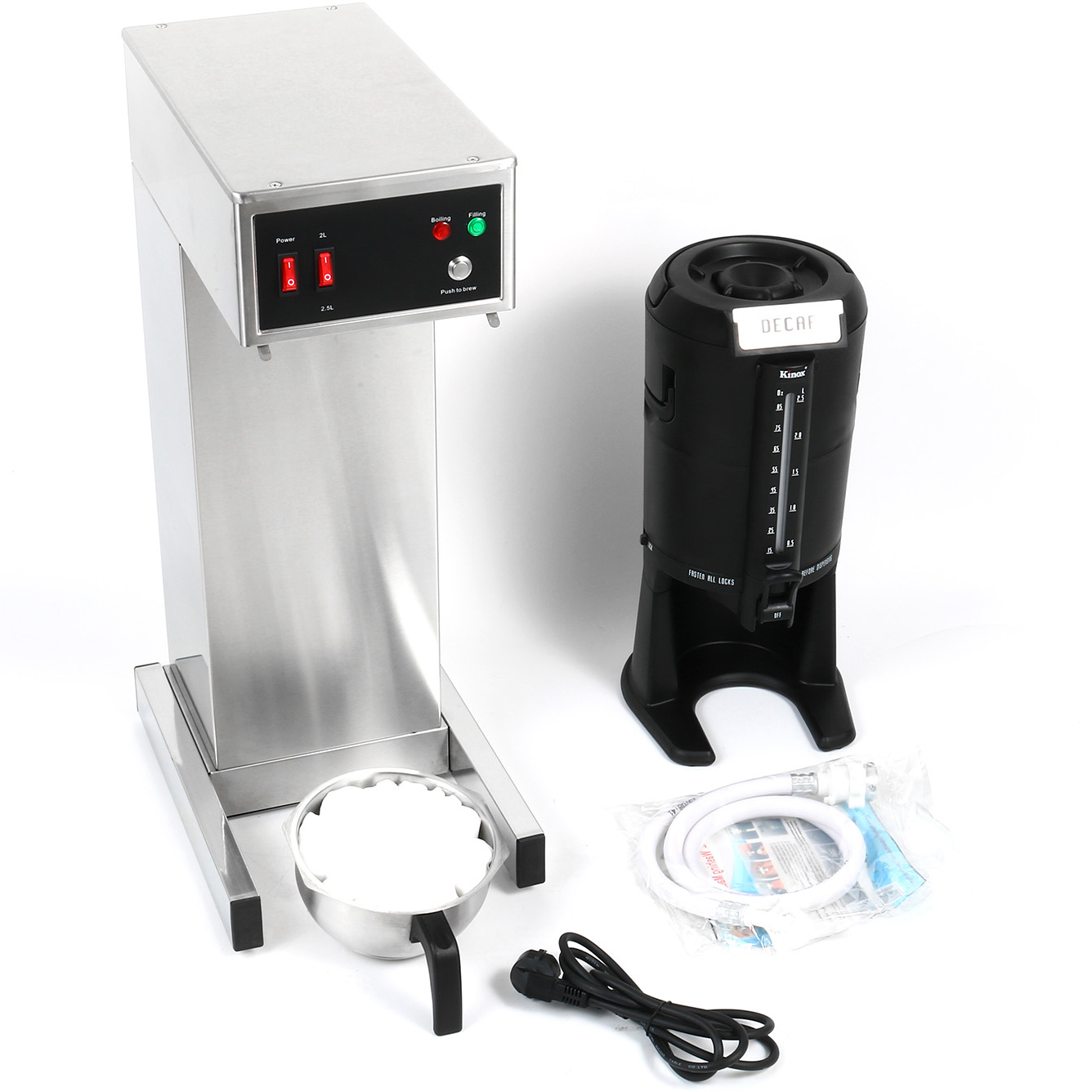 Valmista herkullista kahvia asiakkaillesi tai vierailijoillesi ammattimaisella suodatinkahvikoneella. Tämä kahviloille tarkoitettu käsitäyttöinen kone on suunniteltu julkisiin tiloihin, joissa ihmiset tarvitsevat tehdä erinomaista kahvia helposti, kätevästi ja nopeasti, kuten toimistoissa, kokoushuoneissa, klubeilla, baareissa ja ravintoloissa. Modernilla aerodynaamisella muotoilullaan se tuo täysin uuden mukavuuden ja ylellisyyden tunteen kaupallisiin kahvinkeittimiin. Katso tarkempia tietoja kohdasta ’Tekniset tiedot’.