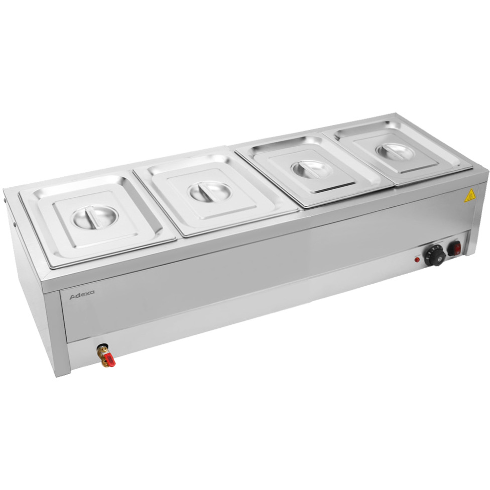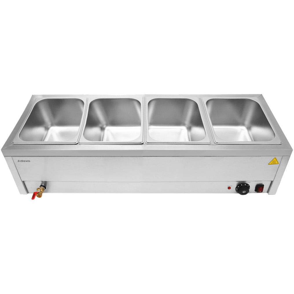 Tämä ammattilaistason vesibain marie on ihanteellinen catering-laite suurten ruokamäärien lämpimänä pitämiseen, valmiina tarjoiluun tai esillepanoon. Suunniteltu tarjoamaan luotettavaa ja tasaista lämpöä. Varustettu vakiolla UK-pistokkeella. Katso yksityiskohtaiset tiedot kohdasta ’Tekniset tiedot’.
