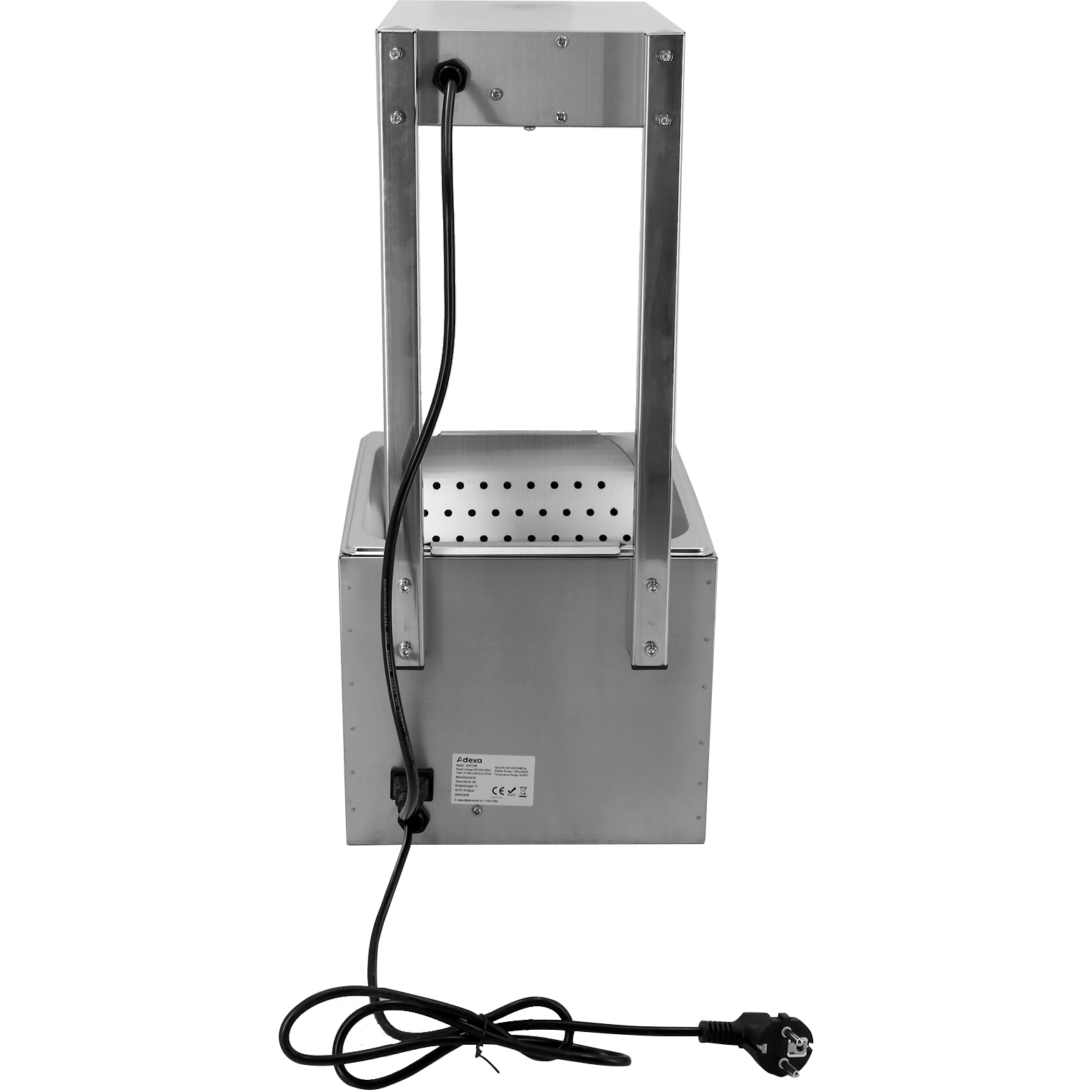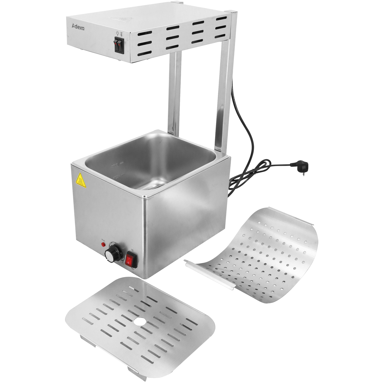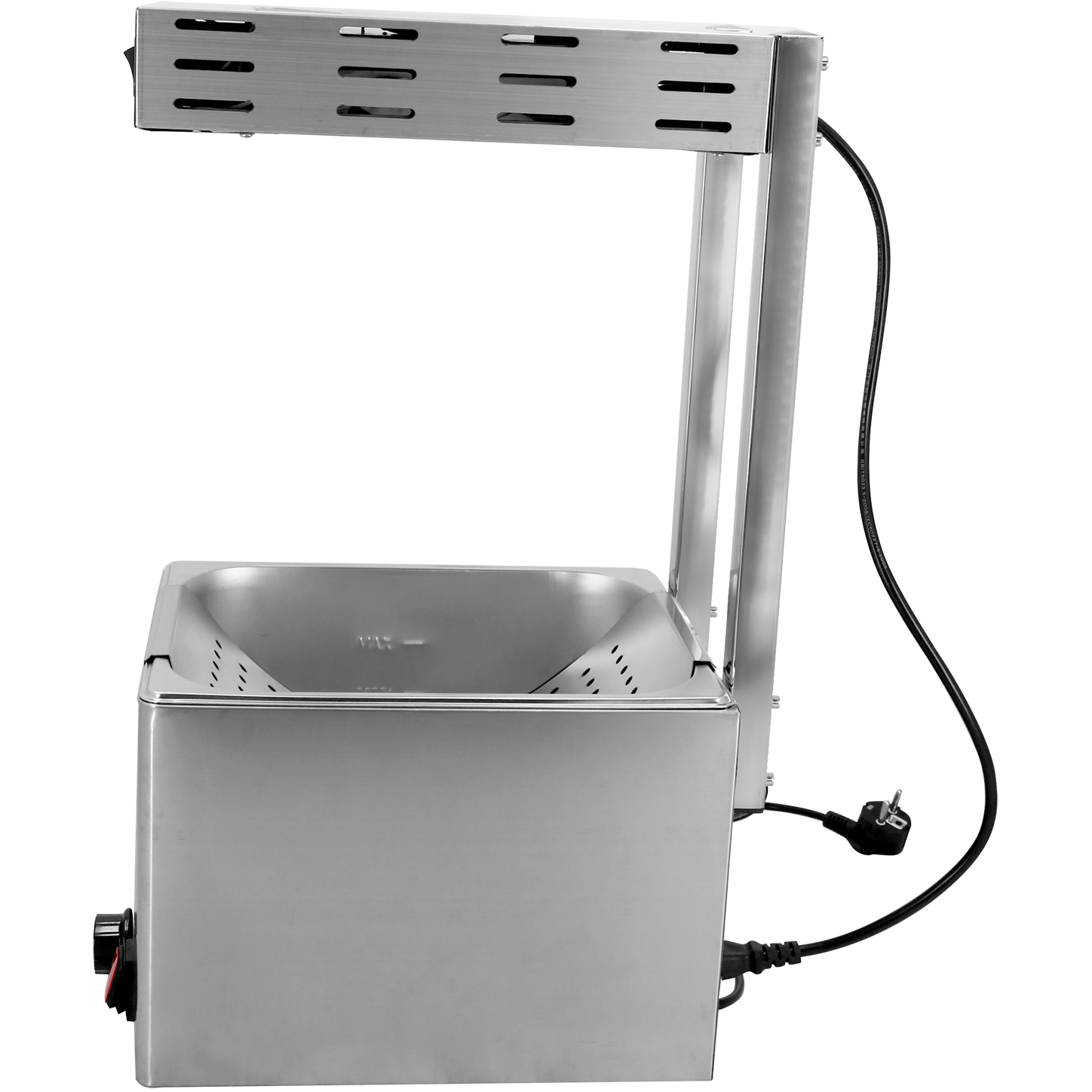 Ammattimainen sähköinen ruoka-/ranskalaistenlämmitin on täydellinen catering-ratkaisu ruokien pitämiseen hygieenisissä ja tarjoiluvalmiissa lämpötiloissa. Katso tarkemmat tiedot kohdasta ’Tekniset tiedot’.