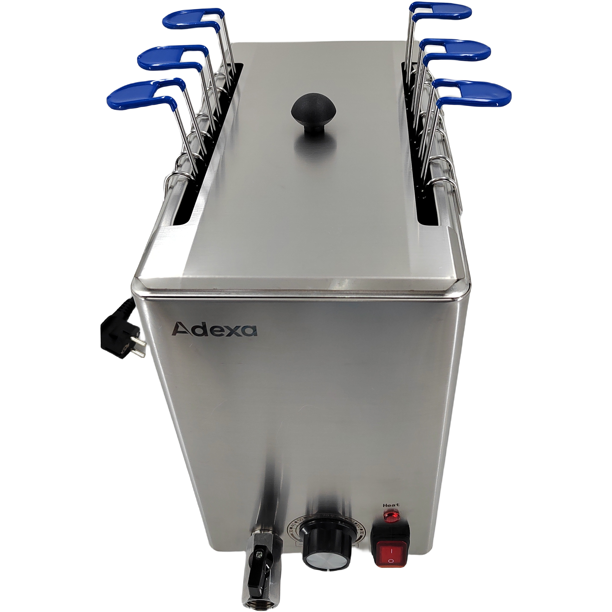 Tuoreesti keitetyt munat, juuri sellaisina kuin haluat. Erittäin pehmeään, keskipehmeään tai kovaksi keitettyyn – tämän ammattimaisen munankeittimen avulla jokainen aamiaispöydän vieras voi valita haluamansa kovuusasteen. 6 erillistä pidikettä Kapasiteetti (vesi): 4 litraa Varustettu vakiomallisella UK-pistokkeella Tarkemmat tiedot ’Erittely’ -kohdassa.