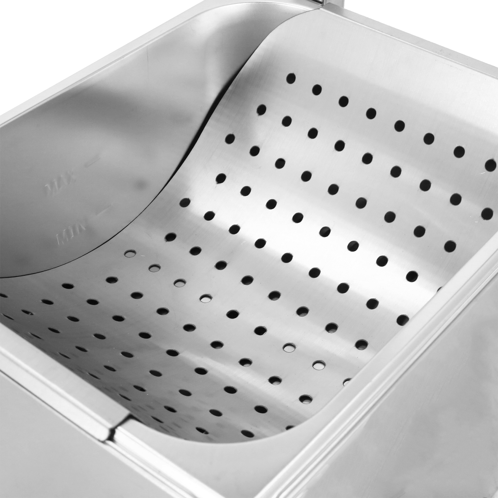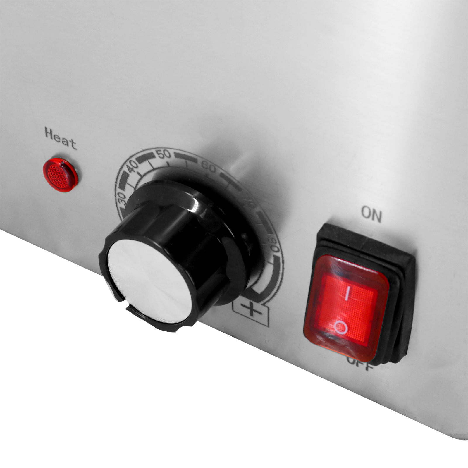 Ammattimainen sähköinen ruoka-/ranskalaisten lämpölaite on täydellinen tarjoiluratkaisu ruoan pitämiseksi hygieenisissä ja tarjoiluvalmiissa lämpötiloissa. Tarkempia tietoja löydät kohdasta ’Tekniset tiedot’.