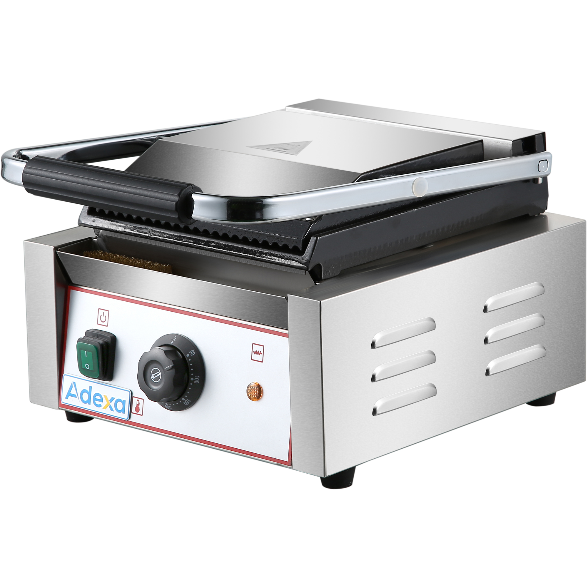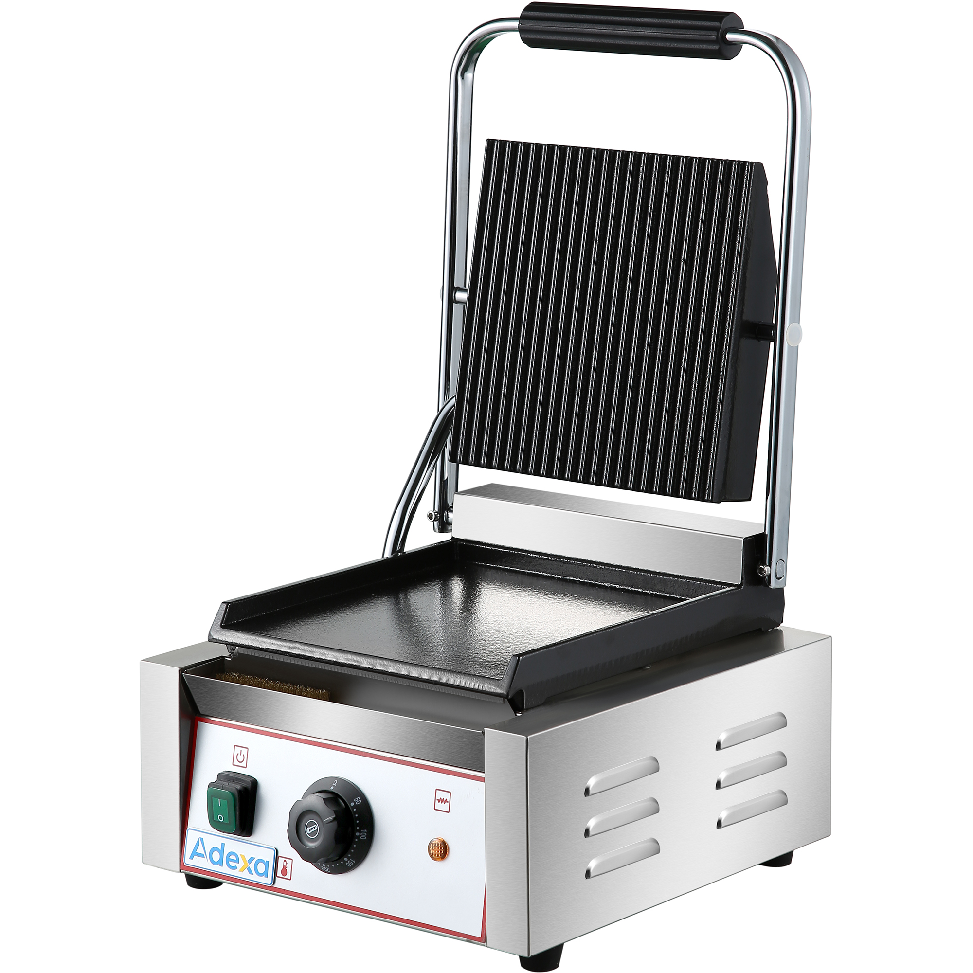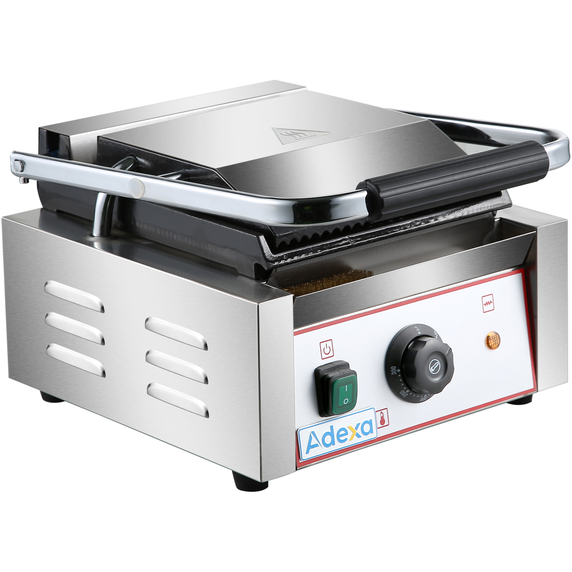 Paista suosituimmat voileipäsi täydellisiksi tällä monikäyttöisellä panini-kontaktigrillillä! Tässä grillissä on valurautaiset levyt, jotka kypsentävät voileipiä tasaisesti. Termostaattiset säätimet antavat mahdollisuuden säätää lämpötiloja, joten voit kypsentää sopivalla lämmöllä, kun taas ulkoinen ruostumattomasta teräksestä valmistettu runko takaa pitkäkestoisen kestävyyden. Erinomainen paninien, voileipien, leivän ja jopa hampurilaisten ja quesadillojen grillaamiseen, tämä monipuolinen grilli tuo vaihtelua ravintolaasi! Ruostumaton teräsrunko Valurautainen kypsennyspinta +50C – +300C Ole hyvä ja katso ’Tekniset tiedot’ -kohdasta tarkempia tietoja.