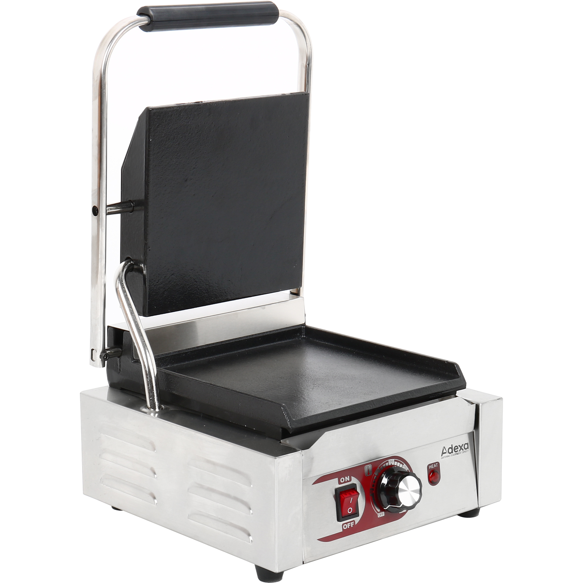 Grillaa suosituimmat voileivät täydellisesti tällä monikäyttöisellä panini-voileipägrillillä! Tässä grillissä on sileät valurautalevyt, jotka kypsentävät voileivät tasaisesti ja jättävät houkuttelevat grilliraidat leipään. Termostaattisäätimien avulla voit säätää lämpötilaa siten, että voit kypsentää juuri oikeassa lämpötilassa, kun taas ruostumattomasta teräksestä valmistettu ulkorunko takaa pitkäikäisen kestävyyden. Erinomainen paninien, voileipien, leivän ja jopa hampurilaisten ja quesadillojen grillaamiseen, tämä monipuolinen grilli tuo vaihtelua yritykseesi! Katso tarkemmat tiedot kohdasta ’Tekniset tiedot’.