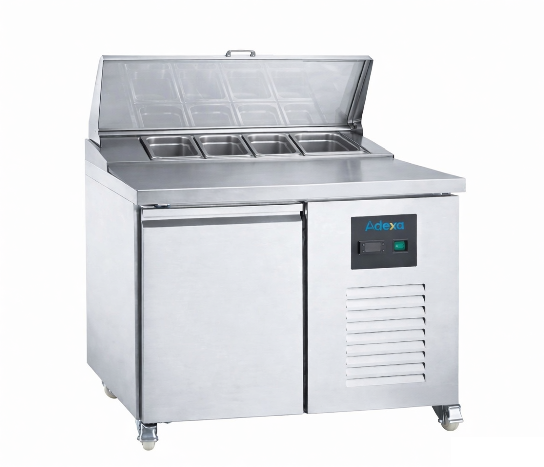 Tämä korkealaatuinen 1-ovinen jäähdytetty valmistelutiski sisältää graniittisen valmistelupinnan. Se on suunniteltu tarjoamaan erinomaista suorituskykyä päivästä toiseen kaikissa kiireisissä ravintola-alan yrityksissä. Tämä on todella erinomainen, hinta-laatusuhteeltaan loistava ammattilaisten valmistelutiski, jossa on hyvänkokoinen jäähdytetty säilytystila. Ihanteellinen ravintoloille, pizzerioille, pikaruokapaikoille, voileipäbaareille ja muille. Se on valmistettu korkealaatuisesta ruostumattomasta teräksestä ja tarjoaa korkean suorituskyvyn, luotettavuuden, tyylin ja erinomaisen vastineen rahalle. Sen täysleveä graniittinen valmistelupinta tarjoaa runsaasti tilaa pizzan/voileipien jne. valmisteluun. 700 mm syvyydellään tämä yksikkö varmistaa, että sinulla on riittävästi valmistelutilaa. Etupaneelissa on säädettävä termostaatti ja digitaalinen näyttö, jossa on korkealaatuinen Carel-ohjain. Helposti puhdistettava ruostumattomasta teräksestä valmistettu sisätila tarjoaa täydellisen ympäristön kaiken valmisteltavan ruoan säilyttämiseen. Ruostumaton teräsrunko. Katso tarkat tiedot kohdasta ’Tekniset tiedot’.