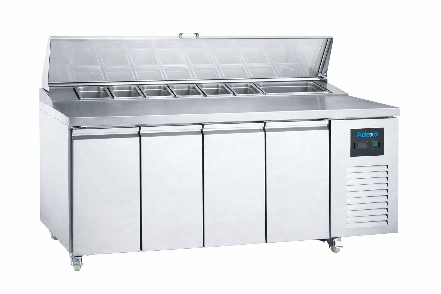Tämä korkealaatuinen 4-ovinen jäähdytetty valmistelutiski sisältää graniittisen valmistelupinnan. Se on suunniteltu tarjoamaan erinomaista suorituskykyä päivästä toiseen kaikissa kiireisissä ravintolaympäristöissä. Tämä on todella erinomainen, edullinen ammattilaistason valmistelutiski, jossa on hyvän kokoinen jäähdytetty säilytystila. Ihanteellinen ravintoloihin, pizzerioihin, pikaruokapaikkoihin, voileipäbaareihin ja muihin. Se on valmistettu korkealaatuisesta ruostumattomasta teräksestä ja tarjoaa korkean suorituskyvyn, luotettavuuden, tyylin ja erinomaisen vastineen rahalle. Sen koko leveydeltä ulottuva graniittinen valmistelupinta tarjoaa runsaasti tilaa pizzan, voileipien jne. valmisteluun. 700 mm syvänä tämä yksikkö varmistaa riittävän valmistelutilan. Etupaneelissa on säädettävä termostaatti ja digitaalinen näyttö korkealaatuisella Carel-ohjaimella. Helposti puhdistettava ruostumattomasta teräksestä valmistettu sisätila tarjoaa täydellisen ympäristön kaiken valmisteltavan ruoan säilyttämiseen. Ruostumattomasta teräksestä valmistettu runko. Katso tarkat tiedot kohdasta ’Tekniset tiedot’.