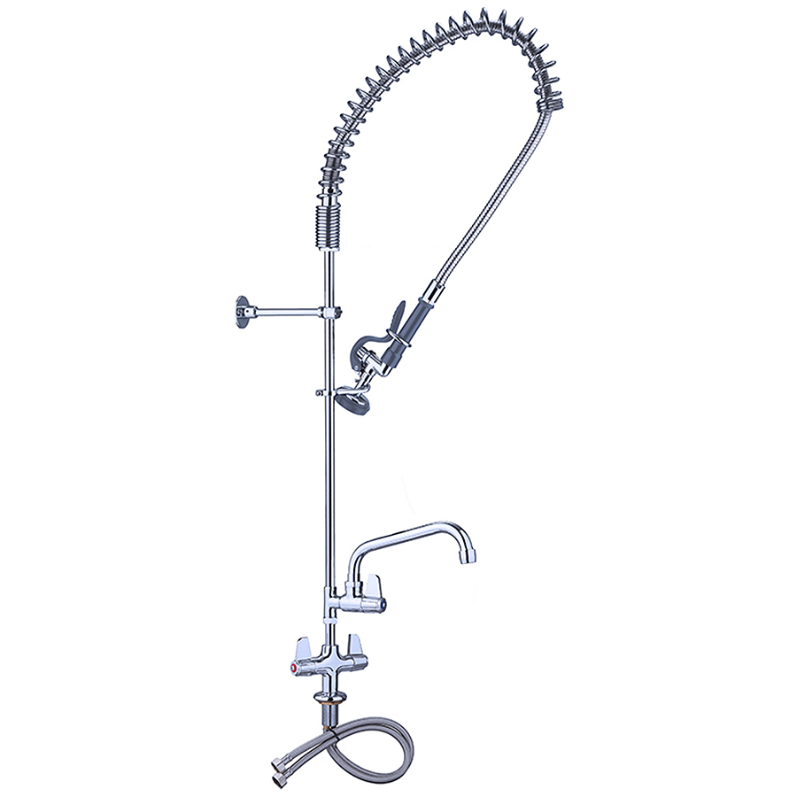 Ammattimainen ja erittäin kestävä esihuuhteluruisku, joka sopii ihanteellisesti ruokapalveluihin, ammattikeittiöihin, ravintoloihin ja hotellisovelluksiin. Jousikuormitteinen joutsenkaula ja keraaminen patruuna estävät vuotoja, molemmat esihuuhteluyksiköt ovat vankkoja ja kestäviä usein toistuvaan käyttöön. Tasokiinnitettävä malli Kaksinkertainen tulo (kuuma ja kylmä vesi) Raskaan käytön ruostumaton teräsrakenne