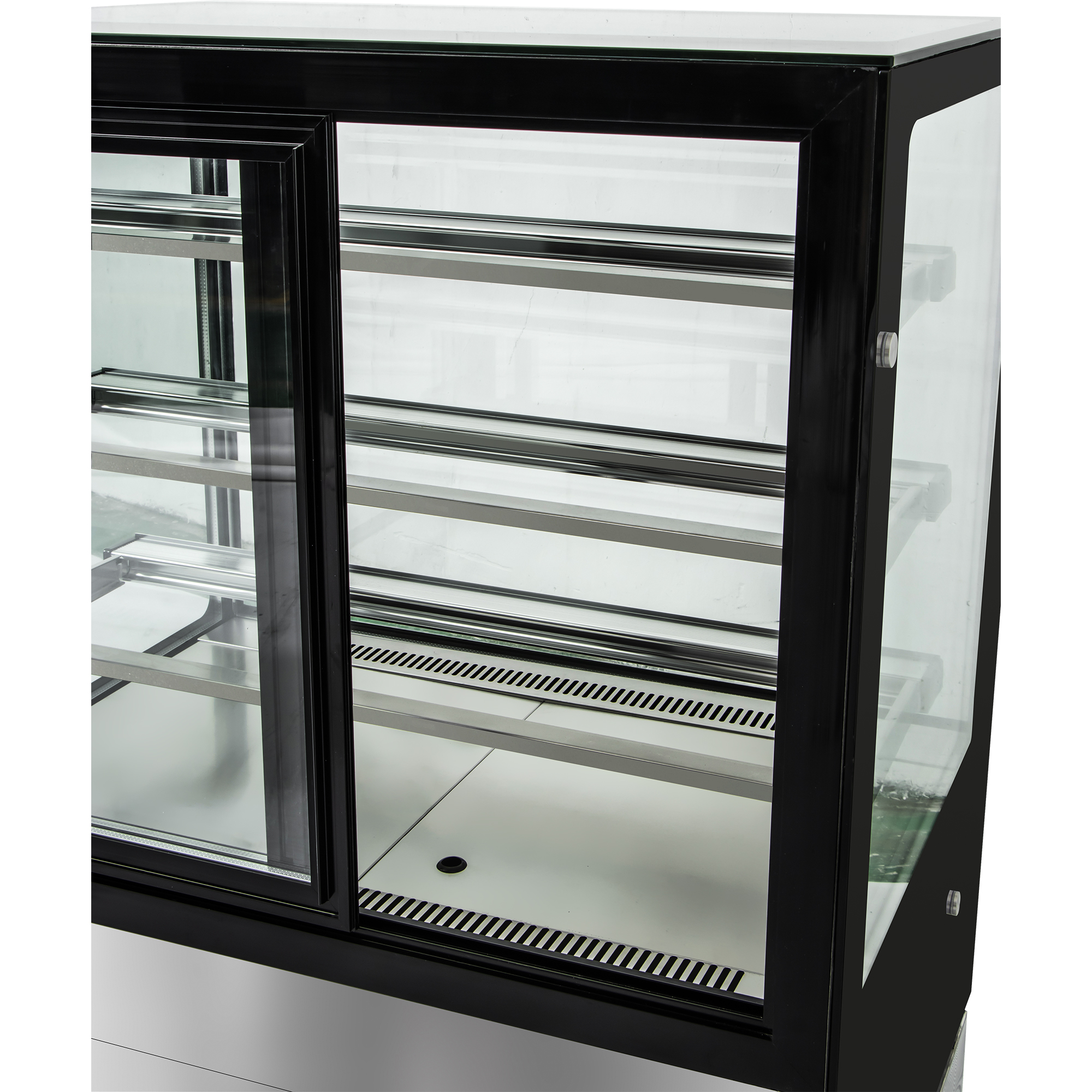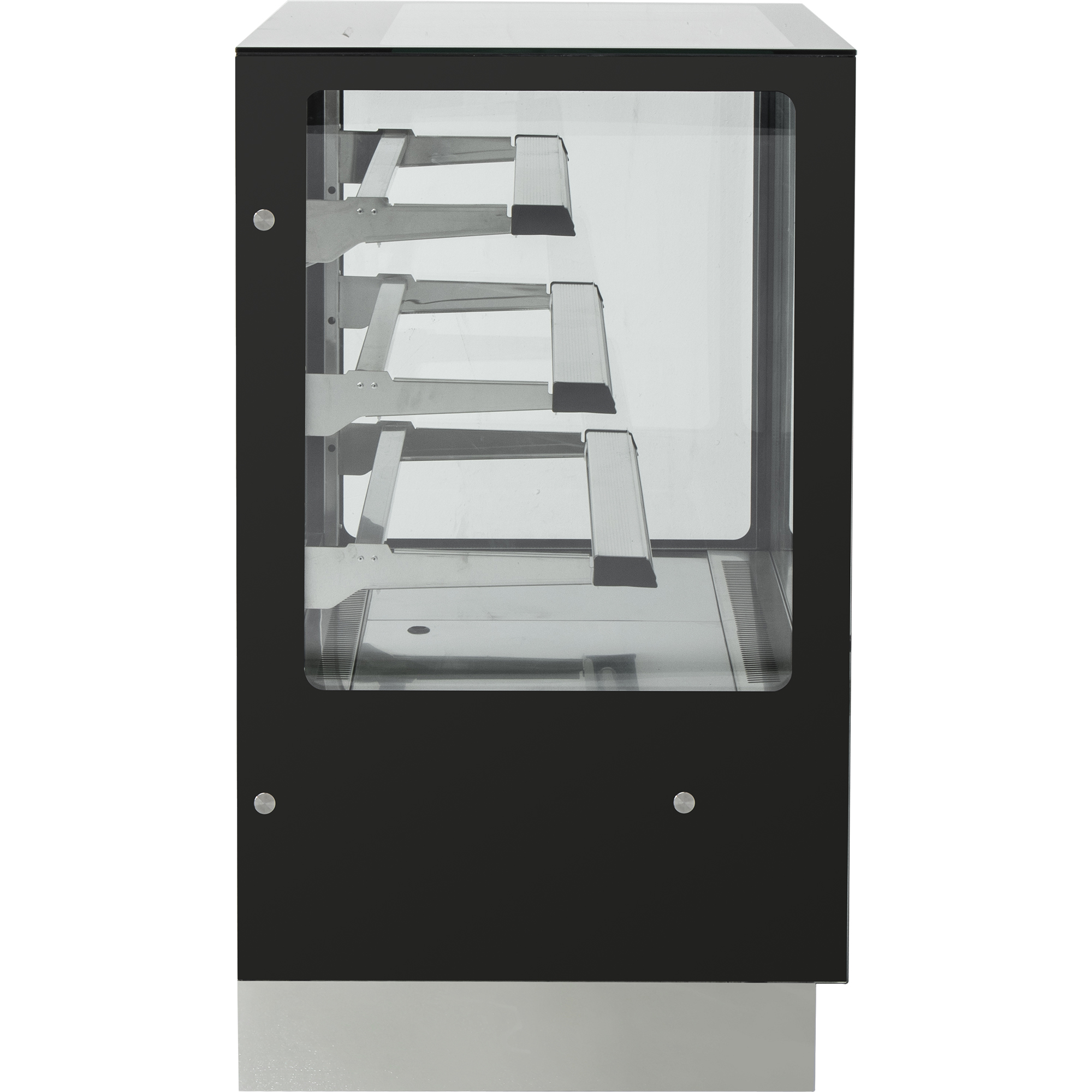 Kaupallinen leivonnaisten esittelykaappi, joka voi toimia leipomotiskinä, ammattimaisena herkkukaupan esittelykaappina tai tavallisena esittelyjääkaappina. Täydellinen kakkutiski useimmille kahviloille, herkkupuodeille, ravintoloille, hotelleille tai myymälöille. Sivut mustasta lasista. Syklopentaani-eristys. Digitaalinen termostaatti. LED-valaistus. Varustettu pyörillä. Ulkopaneelit valmistettu ruostumattomasta teräksestä (AISI304). Kaksinkertainen lasi tyhjiöinnillä. Konvektiovaihto-jäähdytys. Kylmäaine: R290a (CFC-vapaa). Lämpötila-alue: +2C – +8C. Automaattinen sulatus ja sulatusveden haihdutus. 3 hyllyä. Sähköliitäntä: 230V / 1N / 50Hz. Ulkomitat: 900 x 730 x 1300mm. Ympäristön lämpötila: Max +32C. Tilavuus: 320 litraa. CE-sertifiointi. Tuotettu hygienia- ja turvallisuusdirektiivien mukaisesti. Materiaali vastaa Euroopan elintarviketuotestandardia. Vakio UK pistoke asennettu. Dokumentit. Napsauta tästä ladataksesi käyttöohje.