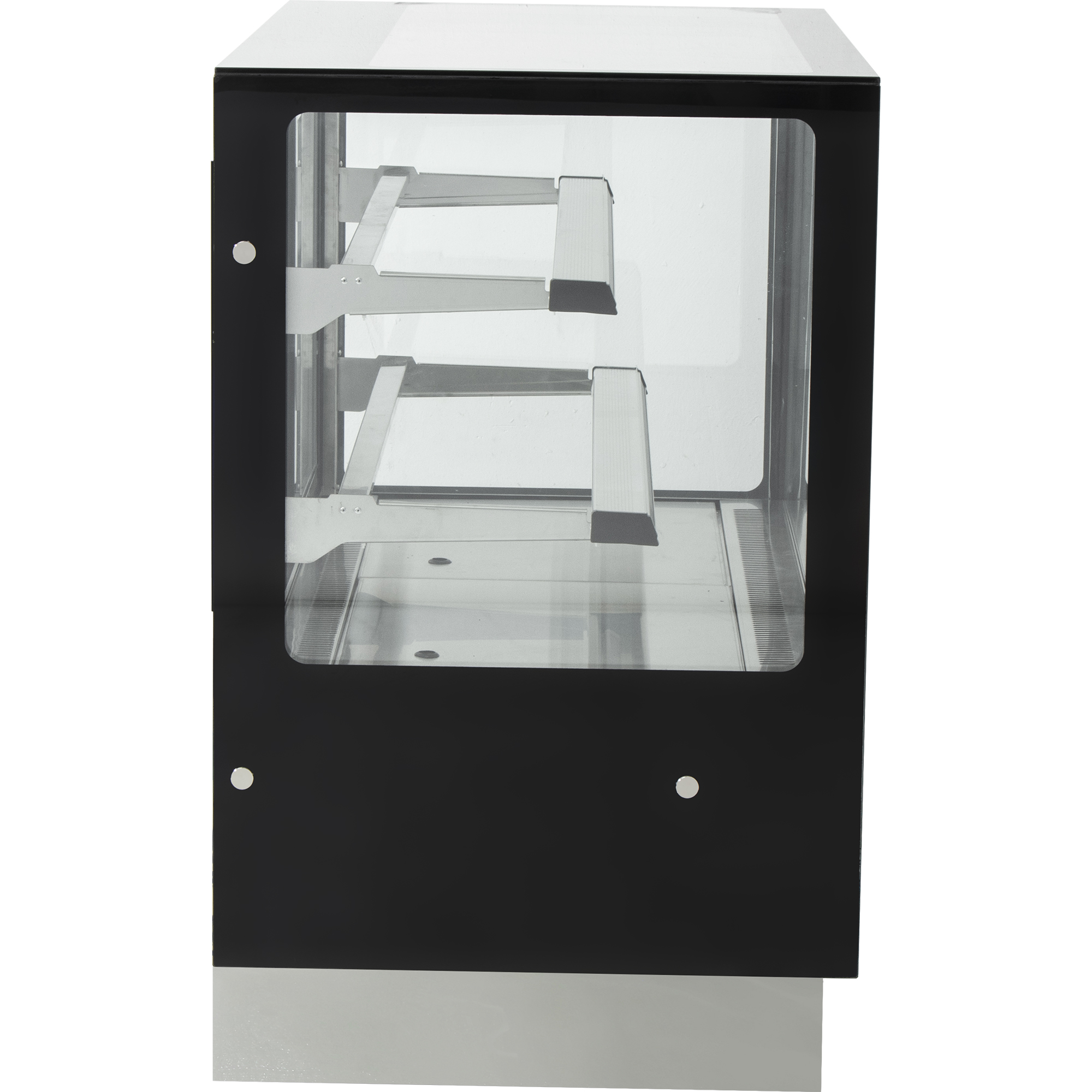 Ammattimainen konditoriavitriini, joka voi toimia leipomo- tai delitiskinä tai tavallisena kylmävitriininä. Täydellinen kakkuesillepano kahviloille, delille, ravintoloille, hotelleille tai myymälöille. Peili edessä. Sivut valmistettu mustasta lasista. Polyuretaani eristys. Digitaalinen termostaatti. Valaistus. Varustettu pyörillä. Ulkopanelointi ruostumattomasta teräksestä (AISI304). Krominen ulkopanelointi. Kaksoislasi tyhjiöllä. Konvektioviilennys. Kylmäaine: R 134a (CFC-vapaa). Lämpötila-alue: +2°C – +10°C. Automaattinen sulatus ja sulatusveden haihdutus. 2 säädettävää hyllyä. Näyttöalue valaistuksella. Teho: 800W. Sähköliitäntä: 230V / 1N / 50Hz. Ulkomitat: 1800 x 730 x 1200mm. Bruttomassa: 140 kg. Ympäristön lämpötila: Max +32°C / 50% kosteus. Täyttää CE-standardit (kansainvälinen TUV-sertifikaatti). Valmistettu hygienia- ja turvallisuusdirektiivien mukaisesti. Materiaalien vastaavuus Euroopan elintarviketuotestandardien mukainen.