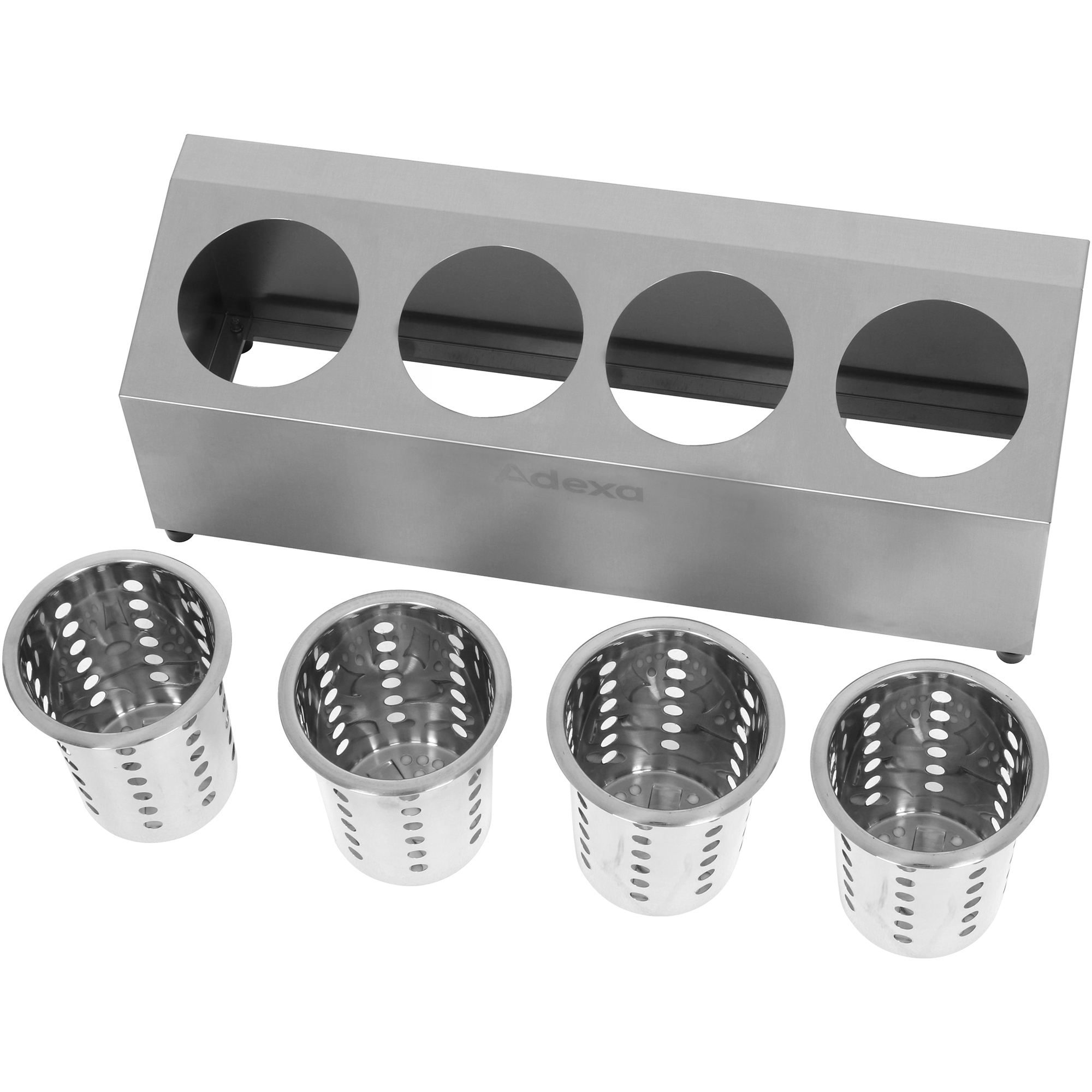 Tarjoten siistin, järjestelmällisen ja hygieenisen tavan asiakkaiden omalle aterinkokoelmalleen, tämä aterinkoripidike voi pitää neljä koria ja on sopiva joko irrallisille aterimille tai aterinpaketeille. Ei rajoitu vain aterimiin, voit myös käyttää tätä kätevää asemaa esimerkiksi pilleille tai muille mausteille.