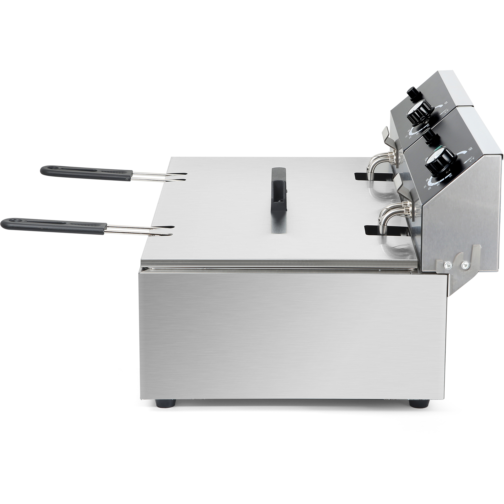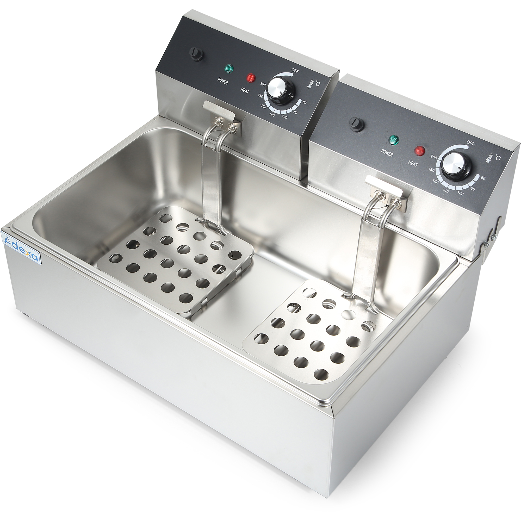 Laadukas yksisäiliöinen, kaksikorinen ammattilaistasoinen sähköinen paistokone. Erinomainen tilansäästö leveydeltään vain 550 mm mutta suurella kapasiteetilla, jossa on 2 x 6 litran säiliöt. Ihanteellinen laite korkean tuotannon pikaruokaravintoloille – tämä on välttämätön kaikille ravintoloille, kahviloille, pikaruokapaikoille tai ruokaloille. Tällä hetkellä valtavia alennusmyytäviä säästöjä tarjoushintaan. 12 litraa 2500 + 2500W +50c – +190c 550x460x300mm Yksi säiliö 2 koria Kohdasta ’Tekniset tiedot’ löydät tarkempia tietoja.