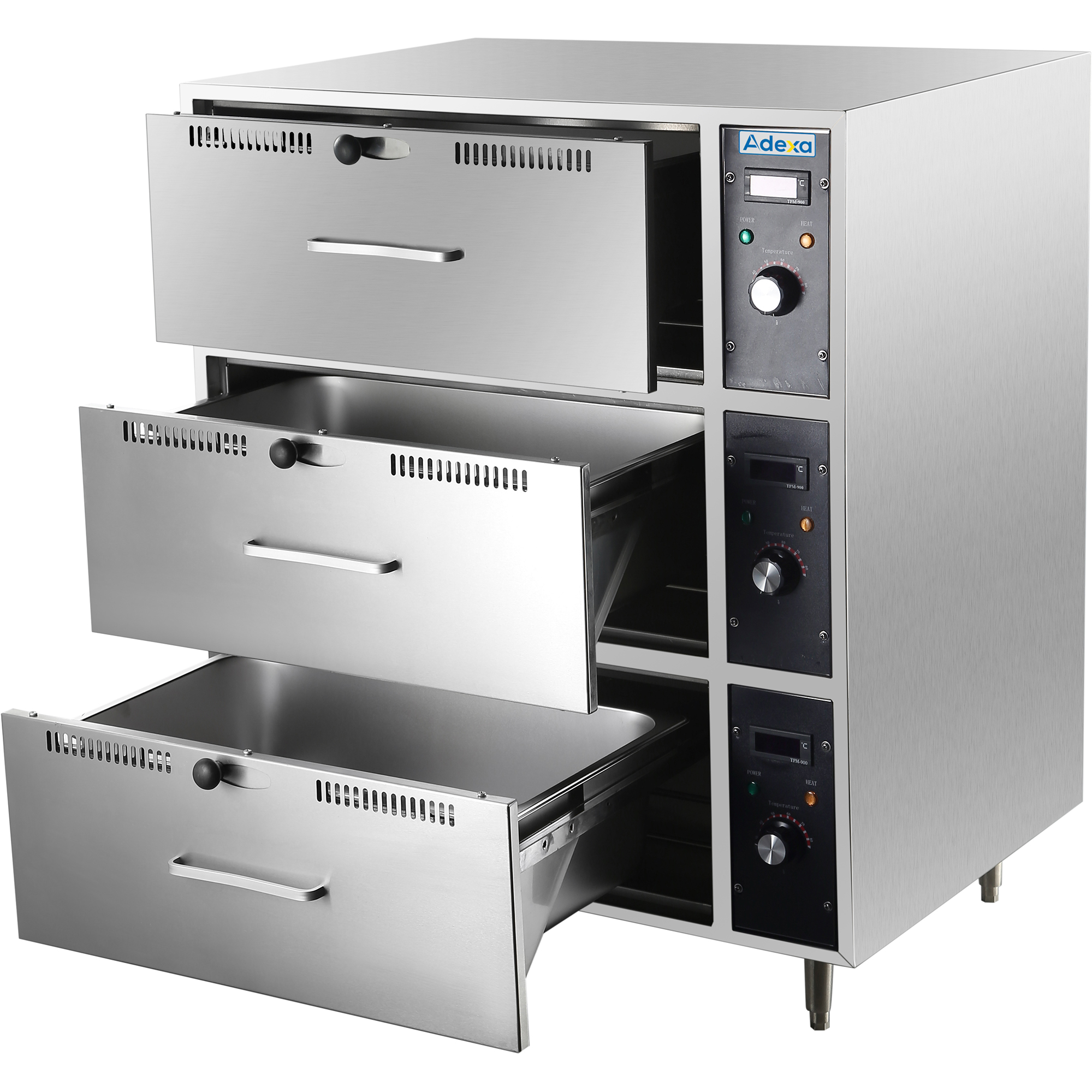 Tämä yksittäinen vetolaatikkolämmitin tarjoaa järjestelmän, joka tuottaa hellävaraista, säteilevää lämpöä ruoallesi. Tässä vetolaatikossa säilytetyt tuotteet pysyvät kosteina, maukkaina ja houkuttelevina pidempään! Koko rakenne ruostumatonta terästä. Termostaatilla ohjattu, kestävä ja vankka. Päällä/pois virtakytkin valaistuksella. Vankkarakenteinen. Erityismuotoiltu lämmityselementti tasaiselle lämmönjakelulle. Vetolaatikon koko: 1 x GN1/1-astia, 150 mm syvyys. Kapasiteetti: 3 x GN1/1.
