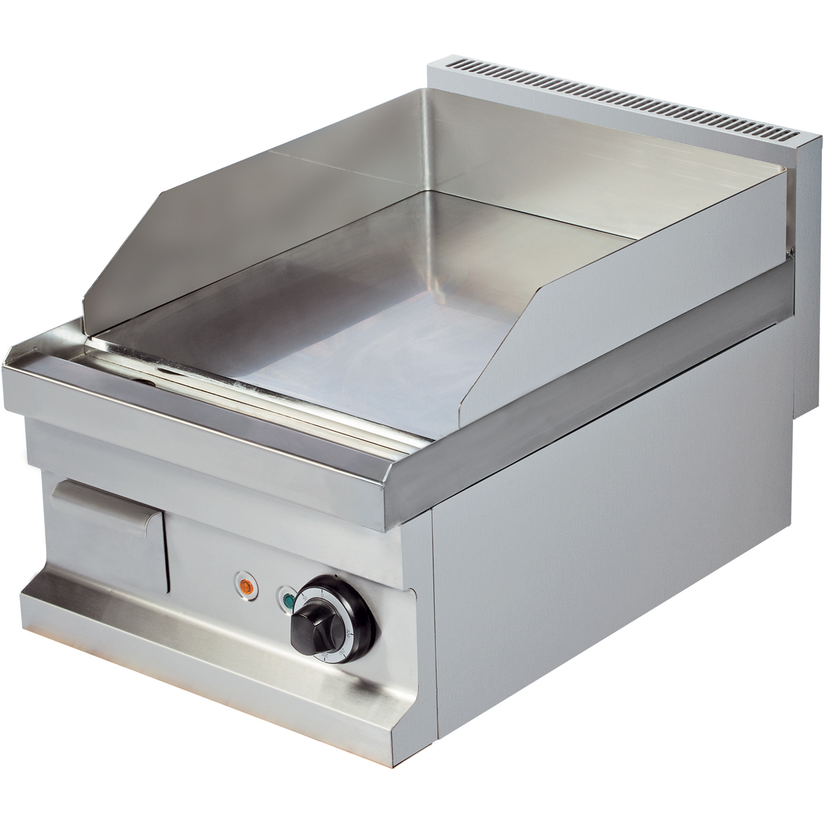Erittäin monipuolinen ammattilaiskeittiöväline, joka soveltuu monenlaisiin kaupallisiin ravintolatiloihin. Sileä pinta. Peilipinta. Kromipinnoitettu. Rungon paneelit ruostumatonta terästä. Hiiliteräslevy. Sähkölämmitteinen. Irrotettava rasvakontti. Termostaatilla ohjattava. Turvatermostaatti. Katso kohdasta ’Tekniset tiedot’ lisätietoja.