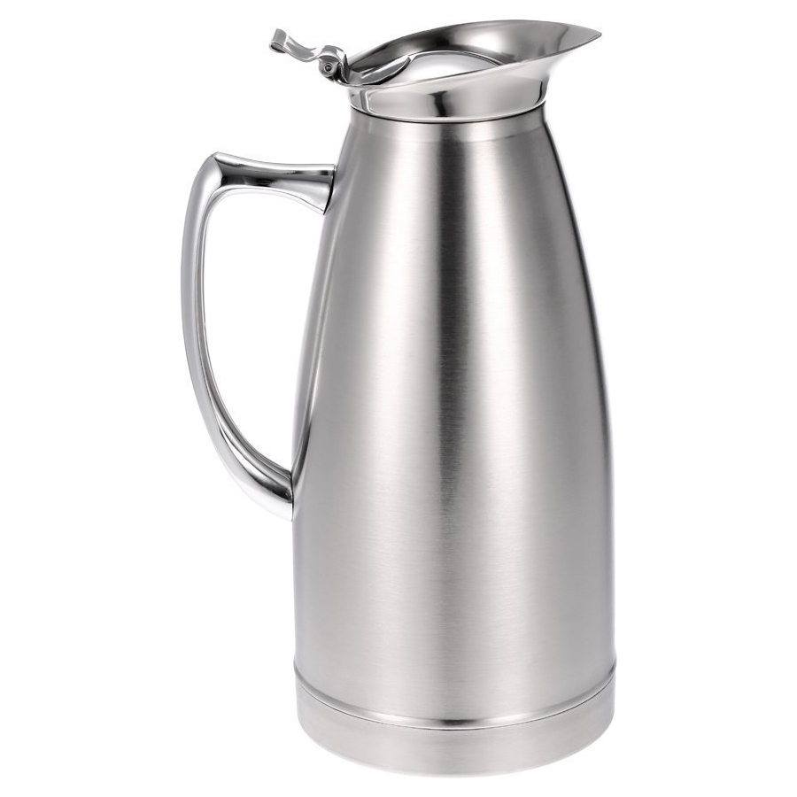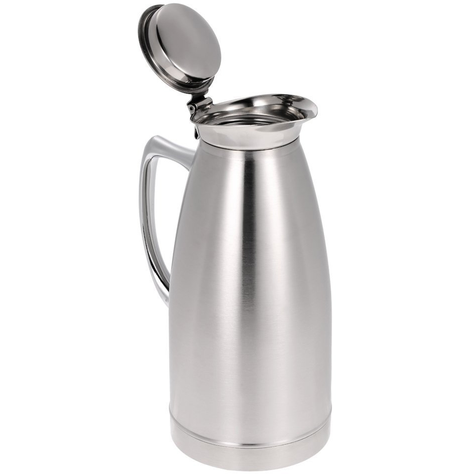 Tämän modernin muotoilun ruostumaton teräskahvipannu on varustettu kaksikerroksisella kahvalla mukavaa kaatamista varten. Saranakannessa on kahva hallittua kaatamista varten, ja kompaktin nokan ansiosta kaataminen on roiskumaton ja säilytys helppoa. Soveltuu teolliseen astianpesuun ja saatavana myös suurempina kokoina.