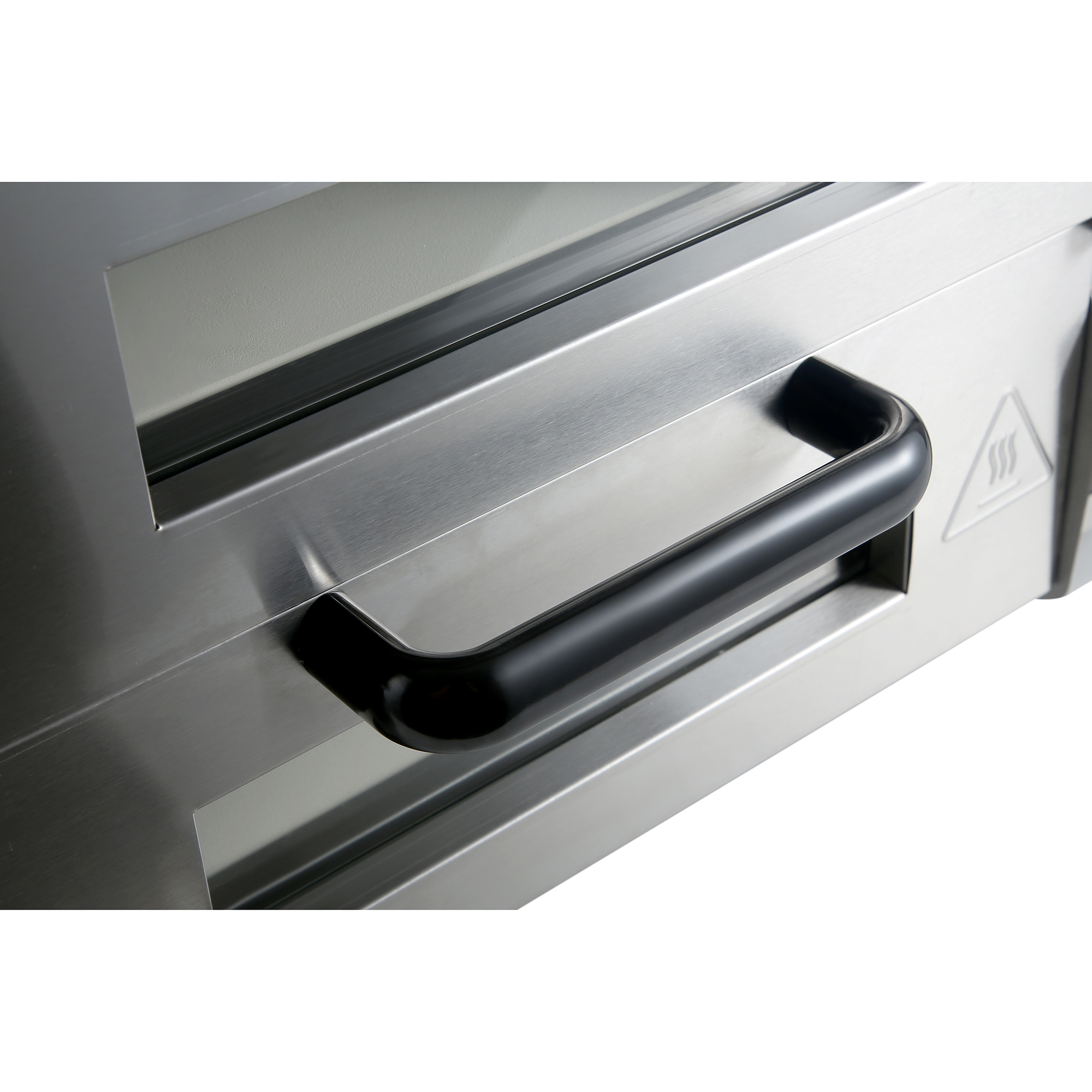 Erinomainen hinta-laatusuhde – termisesti eristetty sähköinen pizzauuni, joka soveltuu hyvin pieniin pizzerioihin, baareihin ja ravintoloihin. Tässä kaksiosaisessa pizzauunissa on kaksi erillistä paistokammiota, joissa on itsenäisesti säädettävä lämpötila kussakin kammiota kohti. Sisäänrakennettu ajastin tekee tästä käyttäjäystävällisestä sähköisestä pizzauunista ihanteellisen lisän mihin tahansa ravintolakohteeseen. Paistaa 8 kpl 8″ pizzaa kerrallaanSäädettävä lämpötila +50c – +350cTarkkailuikkunaHelppo puhdistaaKorkealaatuista ruostumatonta terästä oleva runkoÄärimmäisen kestävä kuumuudelleKeraaminen kivinen paistoalustaTeho: 3 kWSähköliitäntä: 230 V / 1N / 50 HzCE/ROHS sertifiointi60 minuutin ajastinKatso lisätiedot kohdasta ’Tekniset tiedot’.