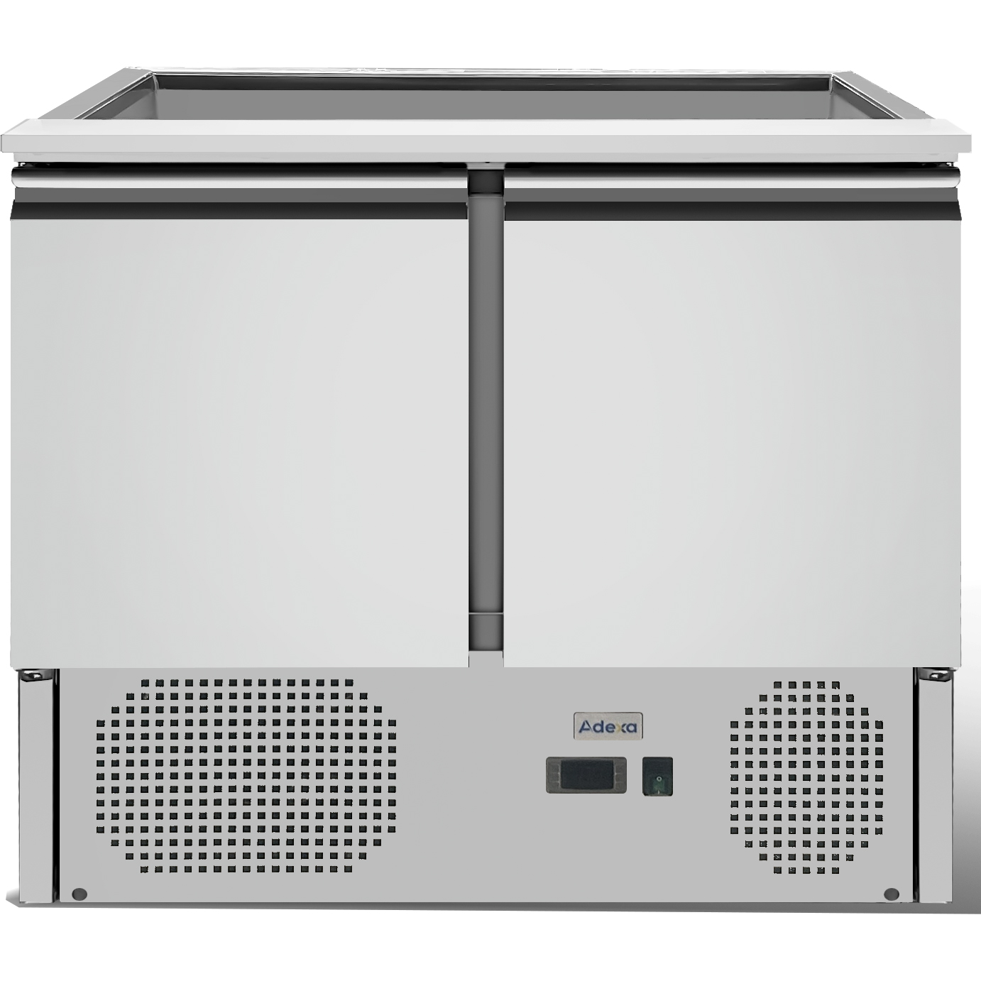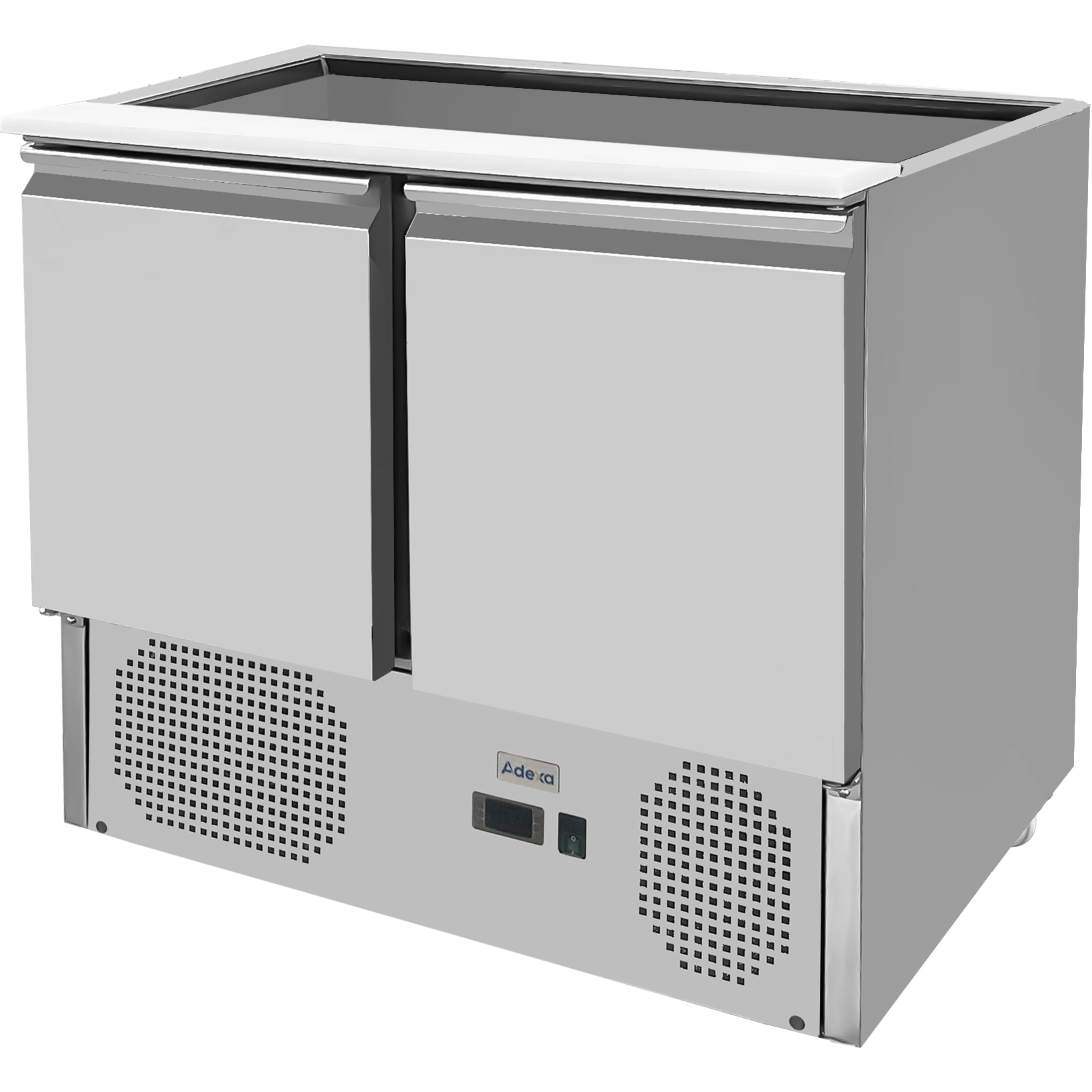 Kaupallinen salaattijäähdytin pyöristetyllä lasikannella. Yksi suosituimmista ammattikäyttöön tarkoitetuista laskureistamme. Kaksi ruostumattomasta teräksestä valmistettua kiinteää ovea. Avoin yläosa sopii 2xGN1/1-pannuilla ja 3xGN1/6-astioilla. Sisä- ja ulkopinnat AISI304 ruostumatonta terästä. Sisäpuolen kaarevat reunat helpon puhdistamisen vuoksi. Magneettitiiviste pitää kylmän ilman sisällä. Helppo poistaa ilman työkaluja. Digitaalinen termostaatti. Korkealaatuinen kompressori. 1 x GN1/1-hylly ovea kohden. Tuuletinavusteinen jäähdytysjärjestelmä. Mitat: 900x700x1330mm. Kapasiteetti: 240 litraa. Lämpötila: +2C – +8C. Virtalähde: 230V / 1 vaihe. Teho: 210W. Asiakirjat Napsauta tästä ladataksesi CE-vaatimustenmukaisuusvakuutuksen.