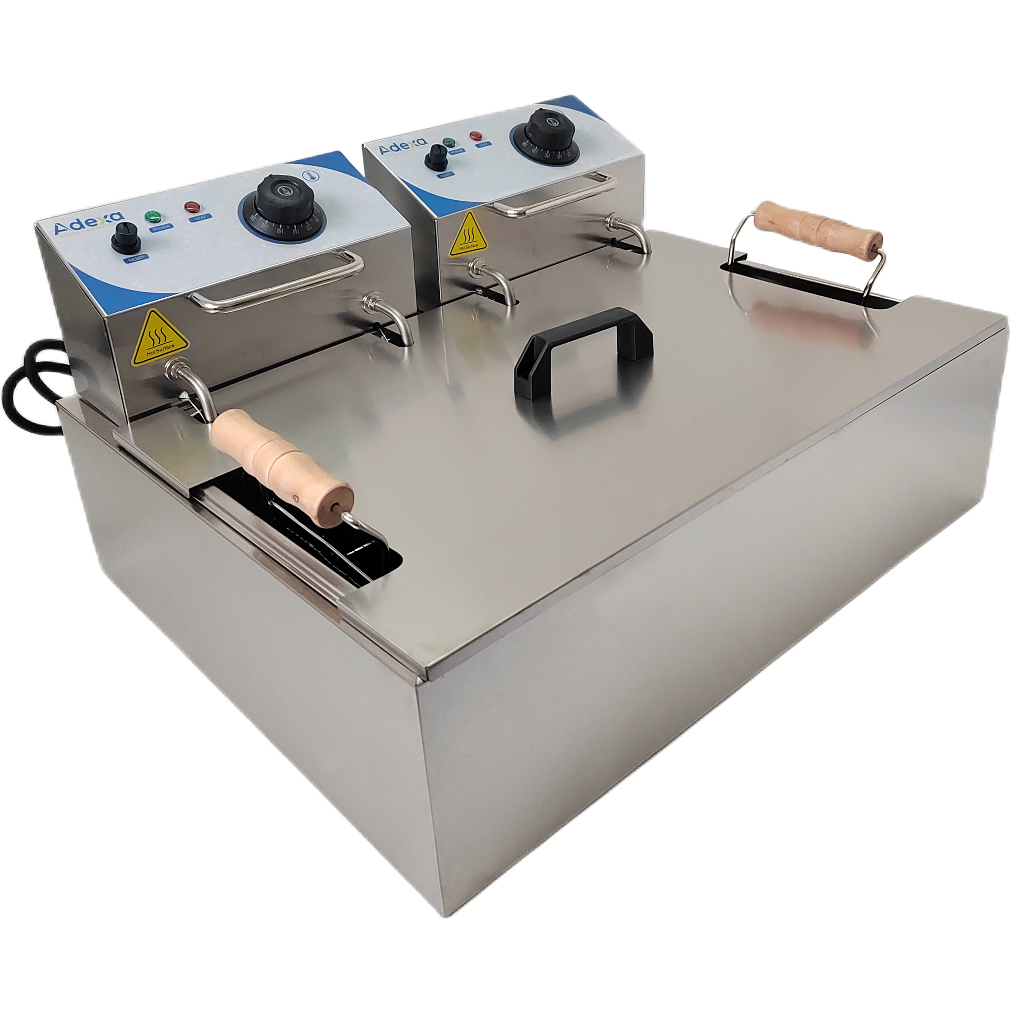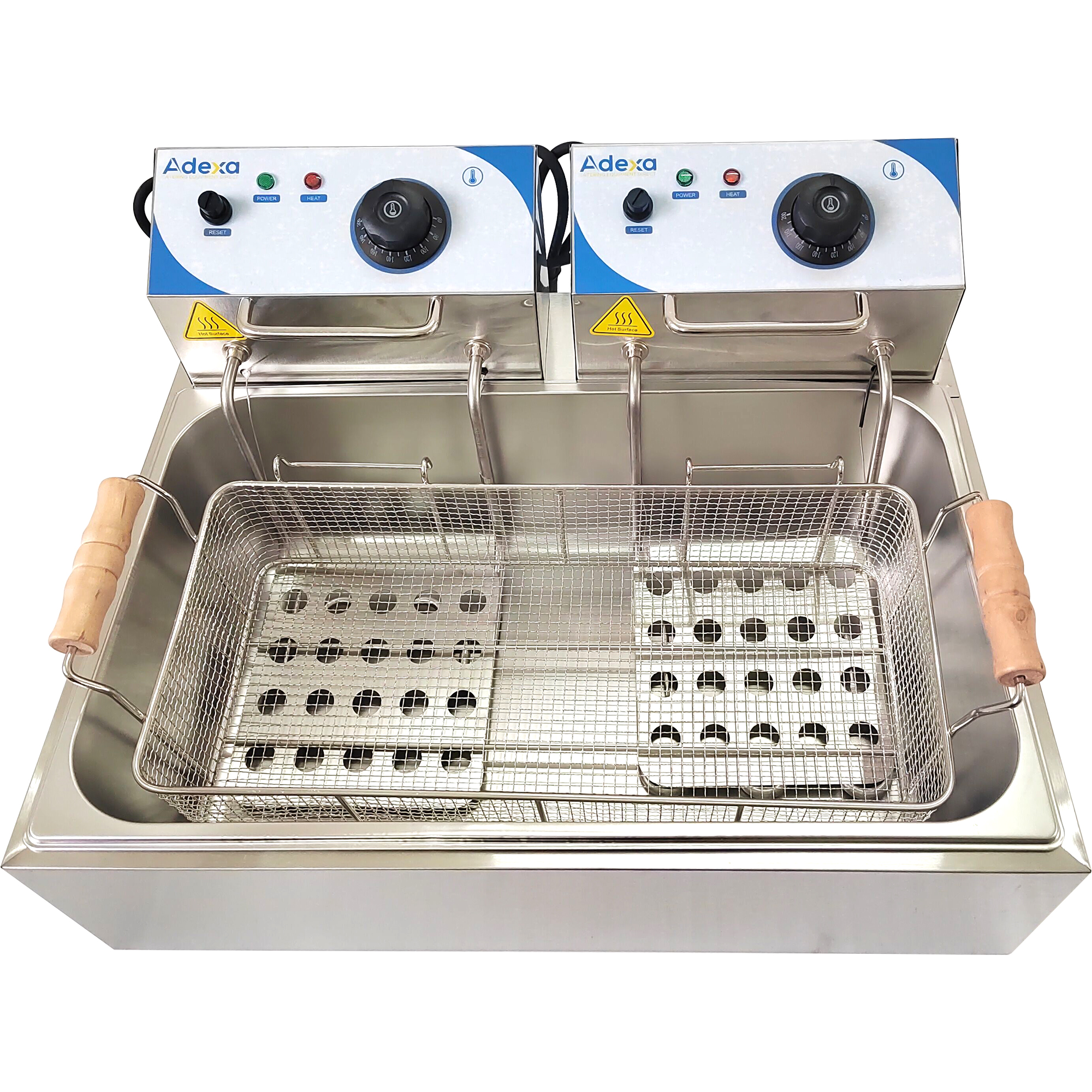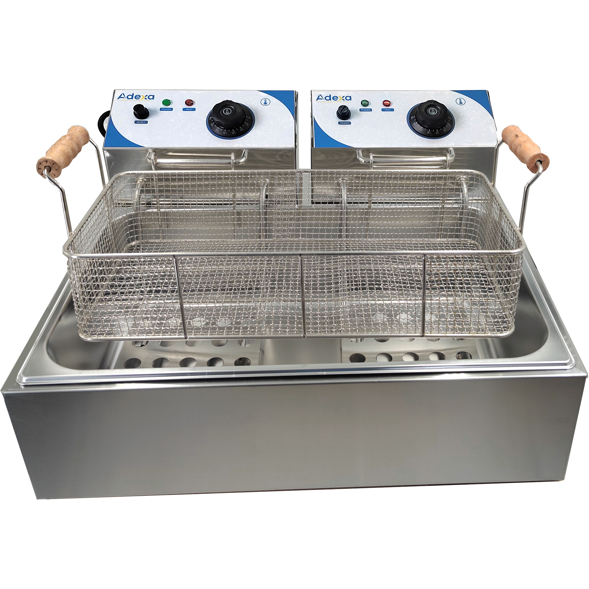 Ammattilaiskäyttöön tarkoitettu yksisäiliöinen rasvakeitin edulliseen hintaan. Täysin ruostumattomasta teräksestä valmistettu friteerauskeitin, jossa on säädettävä lämpötilaohjaus ja turvakatkaisu, mikä tekee laitteesta turvallisen ja ihanteellisen käytettäväksi monenlaisten ruokien kanssa. Ruostumaton teräsrakenne ja irrotettava sisäastia sekä ohjauspaneeli mahdollistavat helpon puhdistuksen. Ruostumaton teräsrakenne. Tarkka termostaattiohjaus. Öljytason maksimi- ja minimi-merkki. Ylikuumenemisturvakatkaisu. Eristetty korin kahva. Jännite: 220V-240V/50HZ. Teho: 2,5kW+2,5kW. Öljykapasiteetti: 14L. Katso yksityiskohtaiset tiedot kohdasta ’Ominaisuudet’.