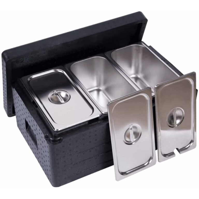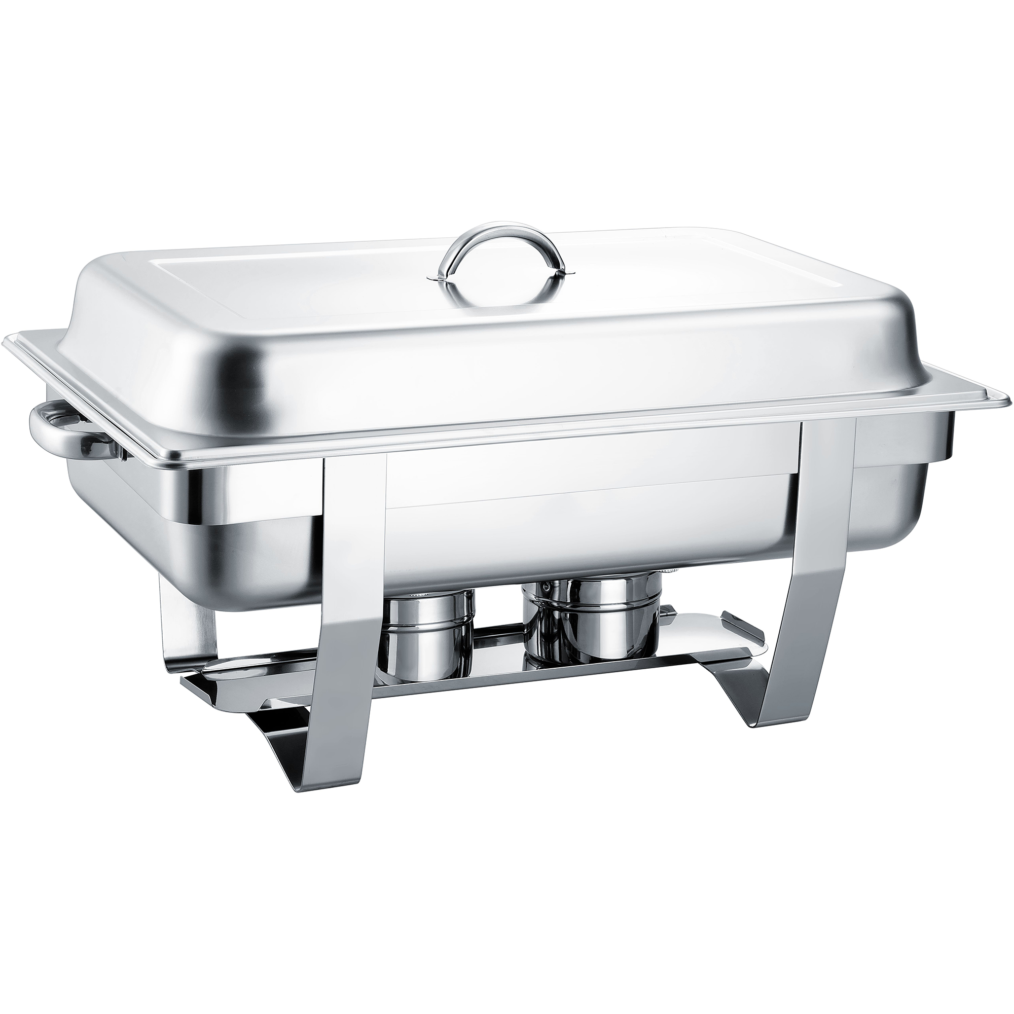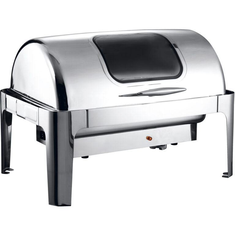 Ammattikäyttöön tarkoitettu ruostumattomasta teräksestä valmistettu 1/1 gastronorm-kokoinen chafer-sarja, jossa on vesipannu, yhdeksän litran ruokapannu, kansi ja kaksi polttoainepidikettä. Katso tarkemmat tiedot kohdasta ’Tekniset tiedot’.