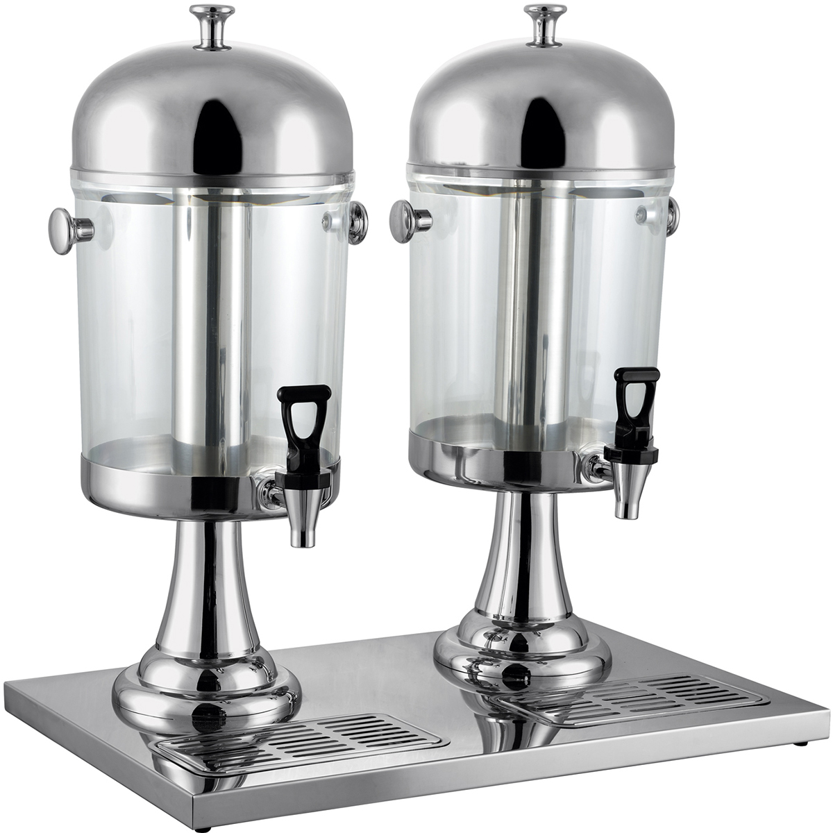 Tarjoile juomia uudella ja retrotyylillä tämän kaksinkertaisen mehujakajan avulla, jossa on tippakaukalo. Jalustamalli antaa vintage-viehätystä tälle suurelle ammattimaiselle juoma-automaatille, joka on täydellinen käytettäväksi hotellin aamiaispöytien buffeteissa tai ravintoloissa veden tarjoiluun. Täytä ontto ydin jääpaloilla pitämään tarjoiltavat juomat viileinä ja takaamaan pitkäkestoinen virkistys. Katso tarkemmat tiedot kohdasta ’Tekniset tiedot’.