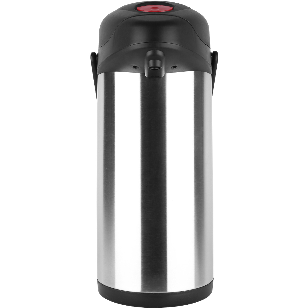 Tämä ammattimainen pumppukäyttöinen termospullo on suunniteltu kovaan kaupalliseen käyttöön. Tämä termospullo on erittäin kestävä eikä siksi todennäköisesti rikkoudu kuljetuksessa tai käytössä, kun taas painonappimekanismi on suunniteltu jatkuvaan käyttöön ja vilkkaisiin tapahtumiin. Kaksinkertainen ruostumattomasta teräksestä valmistettu tyhjiörunko PP-muovinen pää, kahva ja pohja Painamalla pumppaustyyli