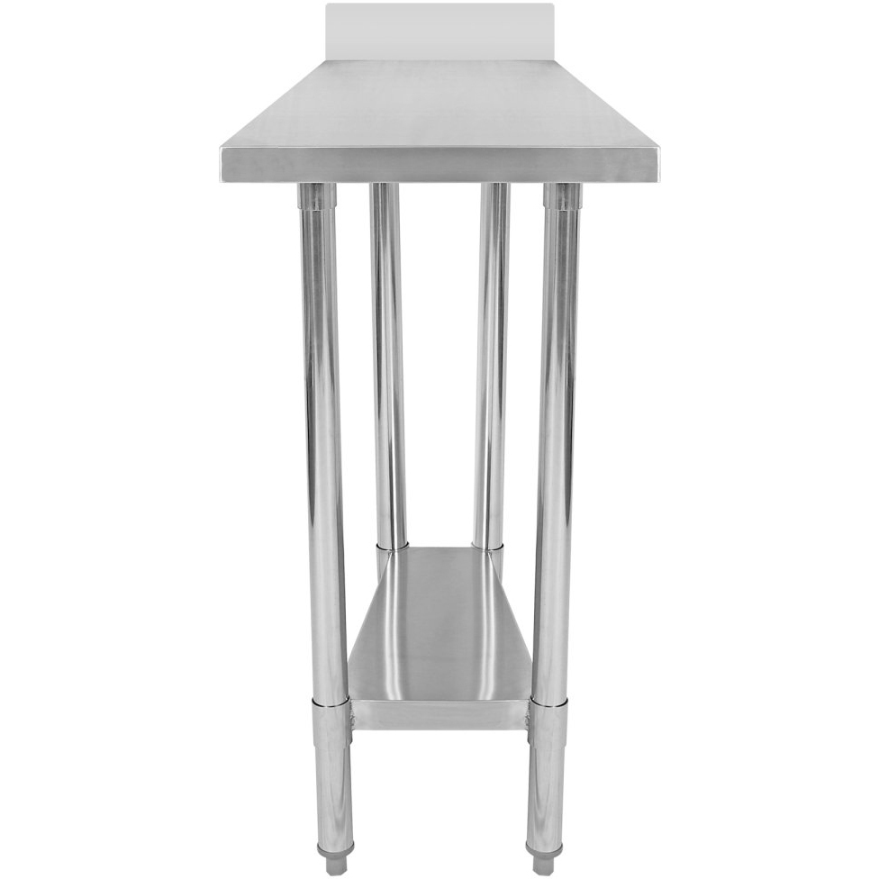 Kompakti ja tehokas, tämä ruostumattomasta teräksestä valmistettu työpöytä tarjoaa kaksi tasoa työskentelyyn ja säilytykseen roiskesuojalla. Valmistettu kestävästä SS201 ruostumattomasta teräksestä, siinä on säädettävä alustahyllyn korkeus ja tukevat pyöreät jalat, ihanteellinen ammattikäyttöön.