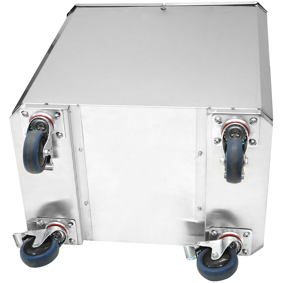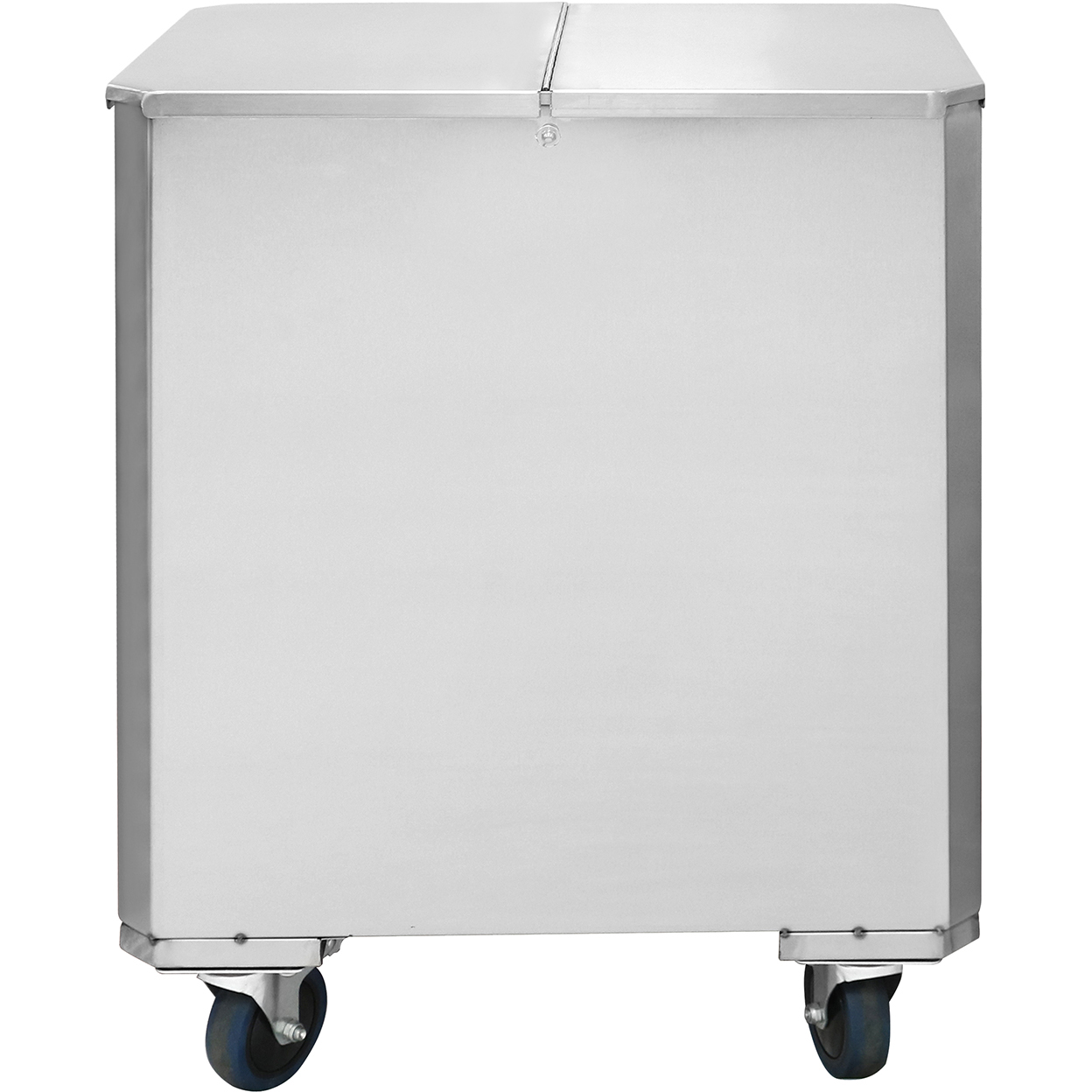 Ammattimainen ruostumattomasta teräksestä valmistettu ainesosavaunu, jossa on neljä pyörää. Tämän vaunun kannessa on kaksiosainen kansi, joka avautuu molemmista päistä. Erittäin monipuolinen kuljetusvaunu, joka soveltuu moneen eri käyttötarkoitukseen ravintoloissa, hotelleissa tai baareissa.