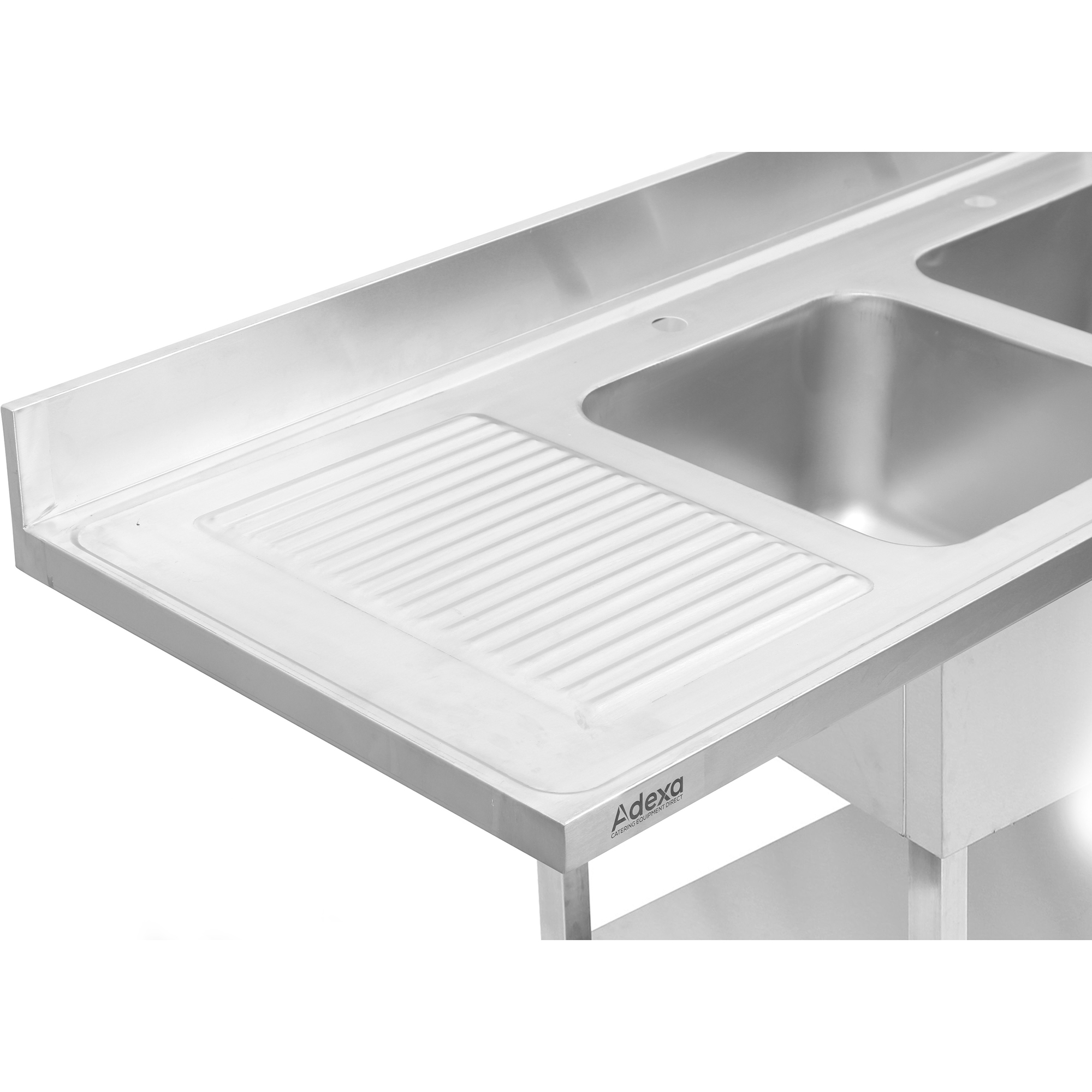 Kaksialtainen lavuaari valumistasolla Neliönmuotoiset jalat antavat vakautta Hitsatut altaat korkean kestävyyden takaamiseksi 10 cm taustalevy pitää seinät puhtaina ja suojattuina Vahvistettu runko lisää vakautta Tyylikäs aaltokuvioitu valumistaso Tämä korkealaatuinen kaksialtainen lavuaari on suunniteltu ammattikeittiöiden tarpeisiin, yhdistäen toiminnallisuuden ja estetiikan. Hitsatut altaat ja vahvistetut reunat takaavat vankan rakenteen, joka kestää päivittäistä käyttöä. Aaltokuvioitu valumistaso on sekä käytännöllinen että lisää tyylikkyyttä. Taustalevy tekee siitä täydellisen keittiön siistinä ja puhtaana pitämiseen, kun taas neliönmuotoiset jalat varmistavat vakauden myös intensiivisten työtehtävien aikana. Erinomainen valinta niin ravintoloihin kuin korkeatasoisiin kotikeittiöihinkin. Katso tarkempaa tietoa kohdasta ”Tekniset tiedot” ja alla kohdasta ”Liittyvät tuotteet” spray-yksiköitä ja hanoja varten.
