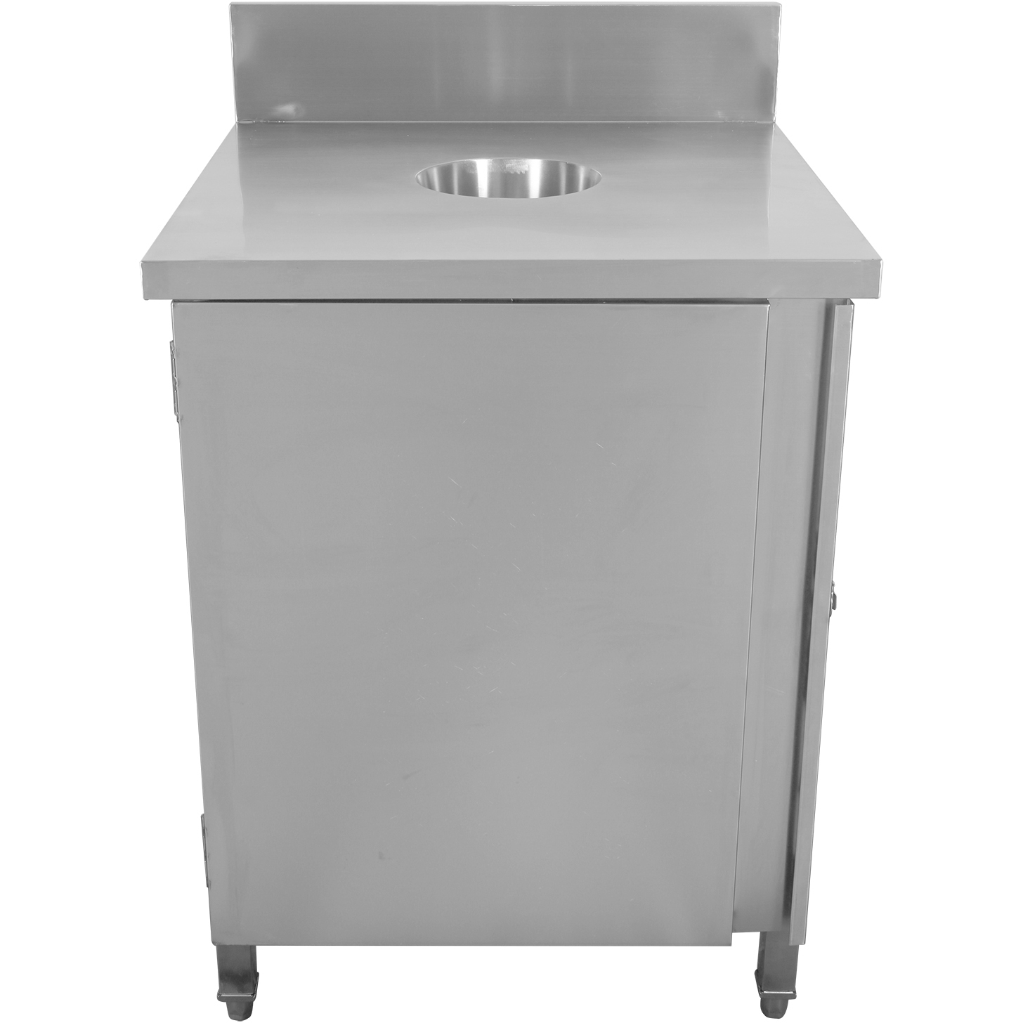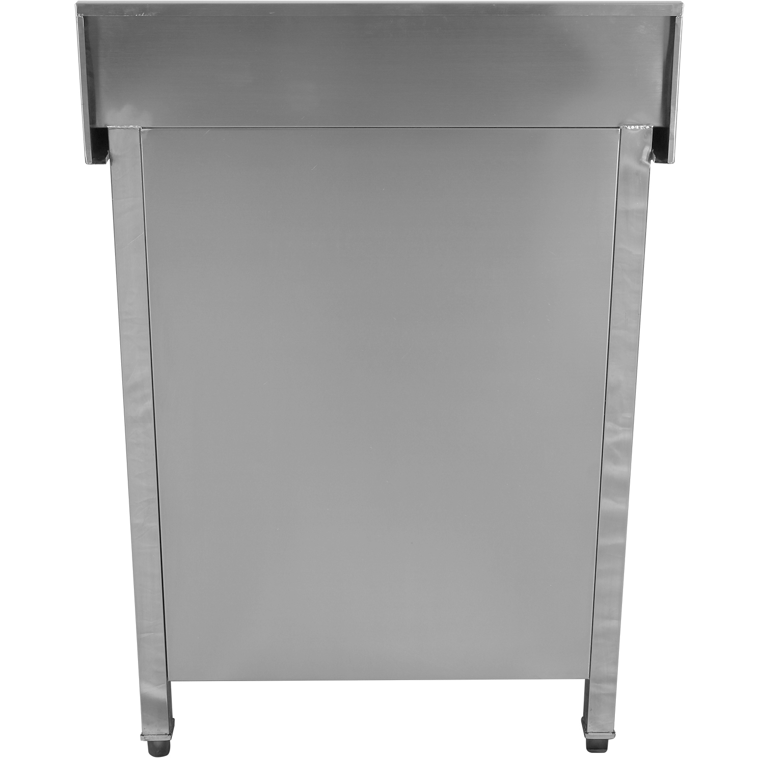 Asiakkaat voivat helposti tyhjentää tarjottimet kallistetun yläosan kautta, ja etuovi mahdollistaa roskakorin helpon poistamisen. Täysin ruostumattomasta teräksestä valmistettu, tämä on hygieeninen ja tyylikäs tapa hävittää jätteet. Erityisen sopiva kahviloihin, itsepalveluruokaloihin ja pikaruokaravintoloihin. Katso tarkat tiedot kohdasta ’Tekniset tiedot’.