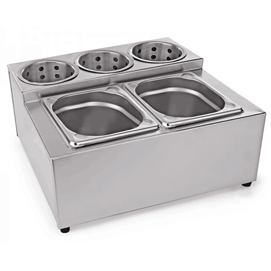 Tämä aterin- ja mausteräkki on täydellinen buffeteihin ja itsepalvelupisteisiin. Vahvasta ruostumattomasta teräksestä valmistettu säilytysteline on erittäin kestävä ja vankka, mikä mahdollistaa sen käytön raskaasti vuosikausia ja vähentää näin tarvetta hankkia korvaavia tuotteita. Sileä ruostumaton teräs on myös erittäin helppo puhdistaa.