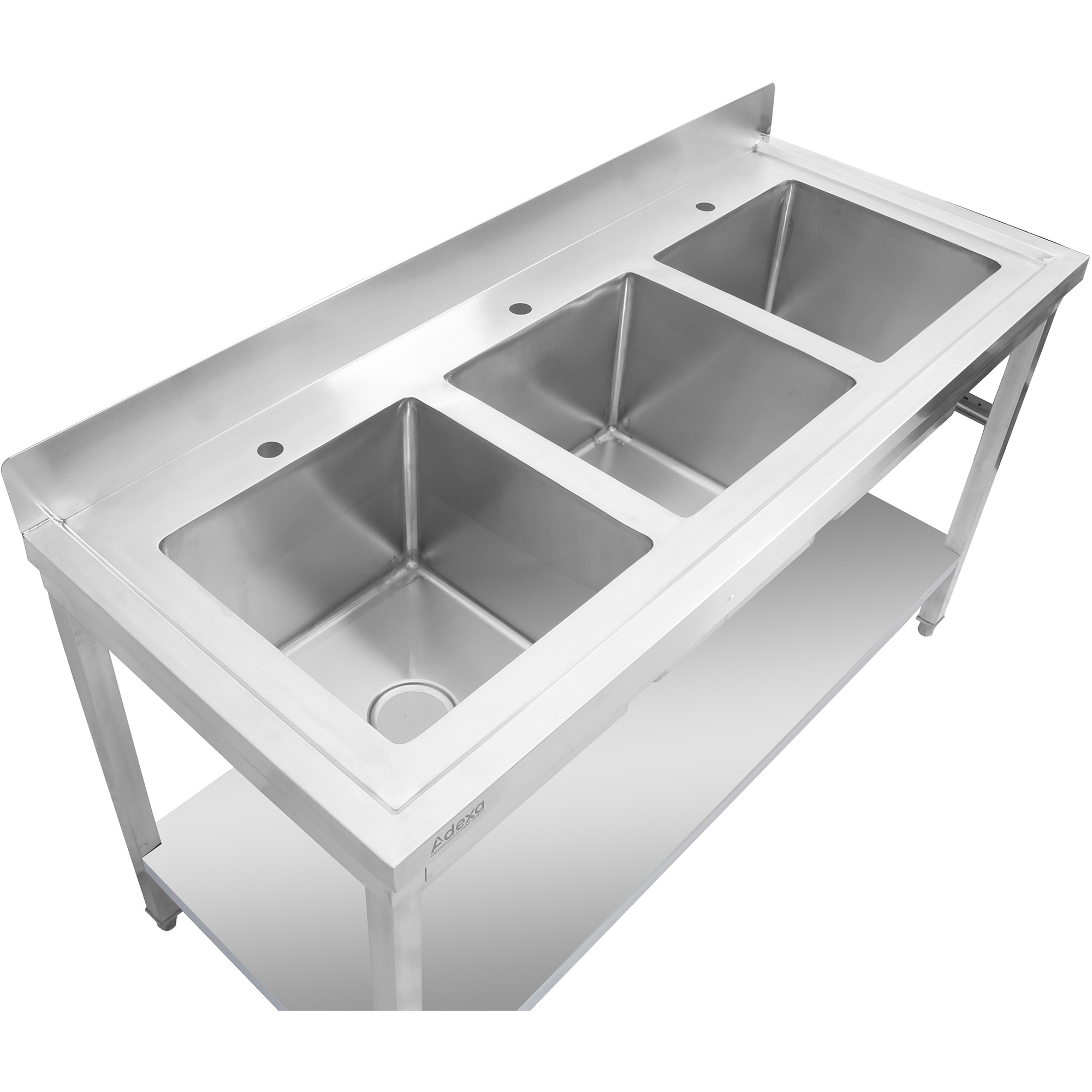 Tämä on erittäin edullinen ammattikeittiön pesuallas. Raskaaseen käyttöön tarkoitettu, korkealaatuinen, täysin ruostumattomasta teräksestä valmistettu ammattiallas, joka täyttää ravintola- ja ruokapalvelualan korkeat laatuvaatimukset. Ei sinkittyjä osia, kuten markkinoiden halvoissa vaihtoehdoissa! Ruostumaton teräsrakenne 1 ennalta porattu hanan reikä per allas Säädettävät jalat Valumista estävä reuna Roiskesuoja 100 mm Toimitetaan litteänä Ole hyvä ja katso tarkat tiedot kohdasta ’Tekniset tiedot’.